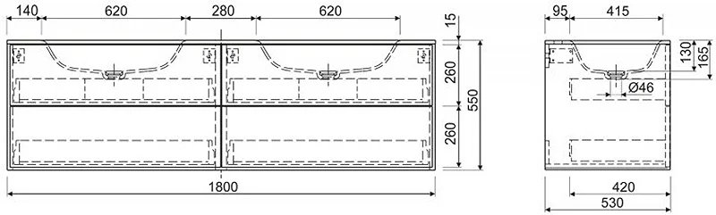 Тумба под умывальник Cezares Titan TITAN-II-1800/530-4C-SBA Shiny black acrylic