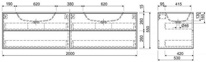 тумба под умывальник cezares titan titan-ii-2000/530-4c-blh black hacienda