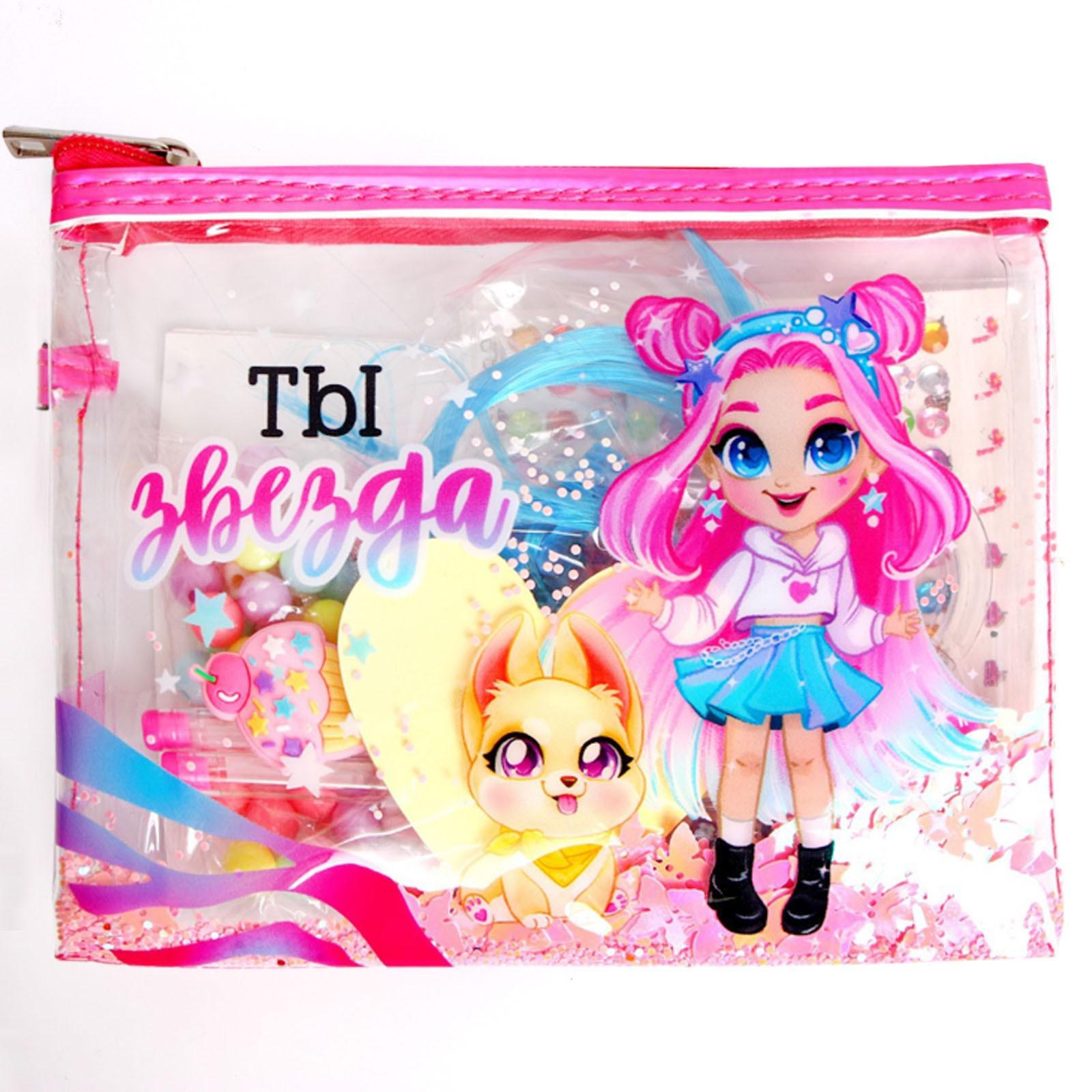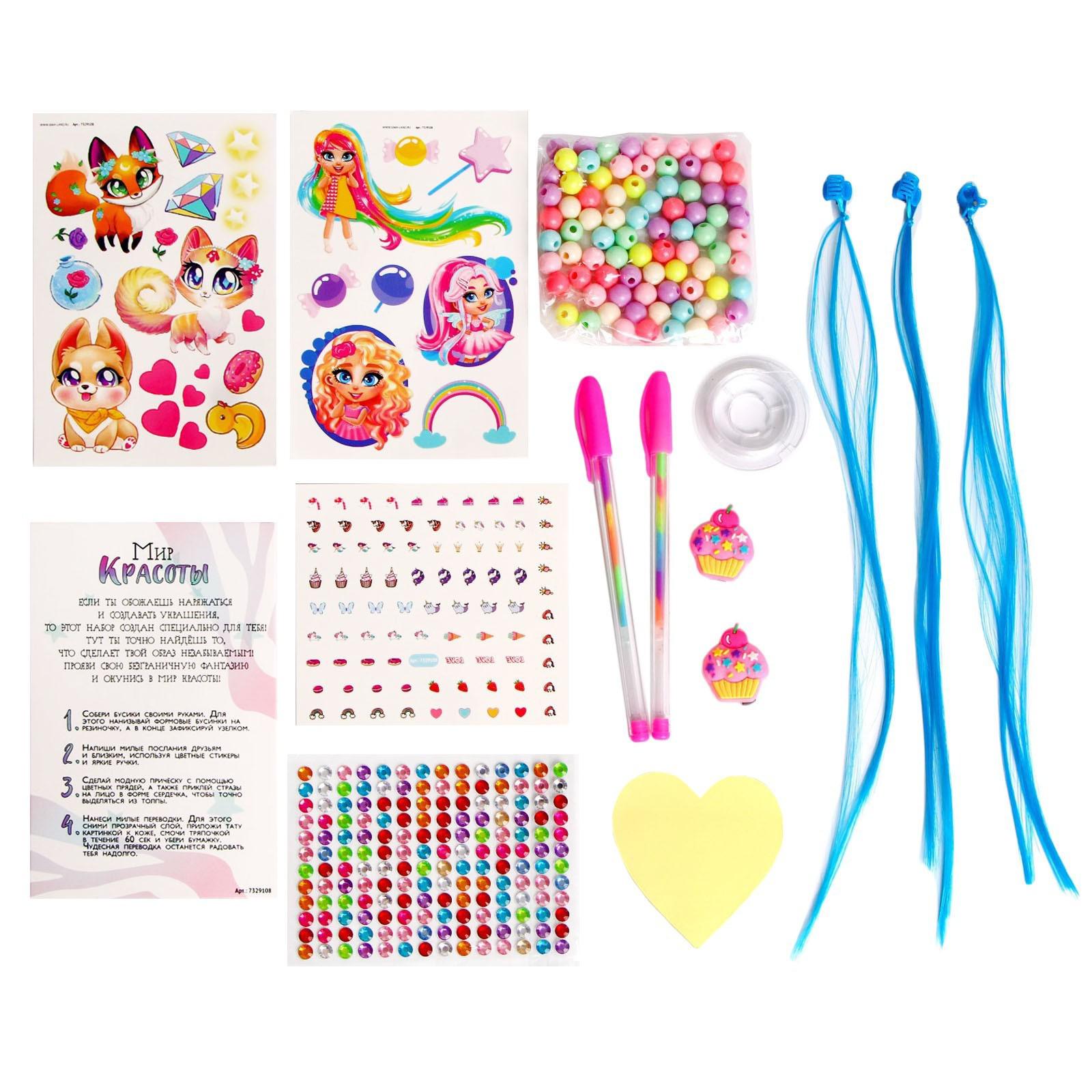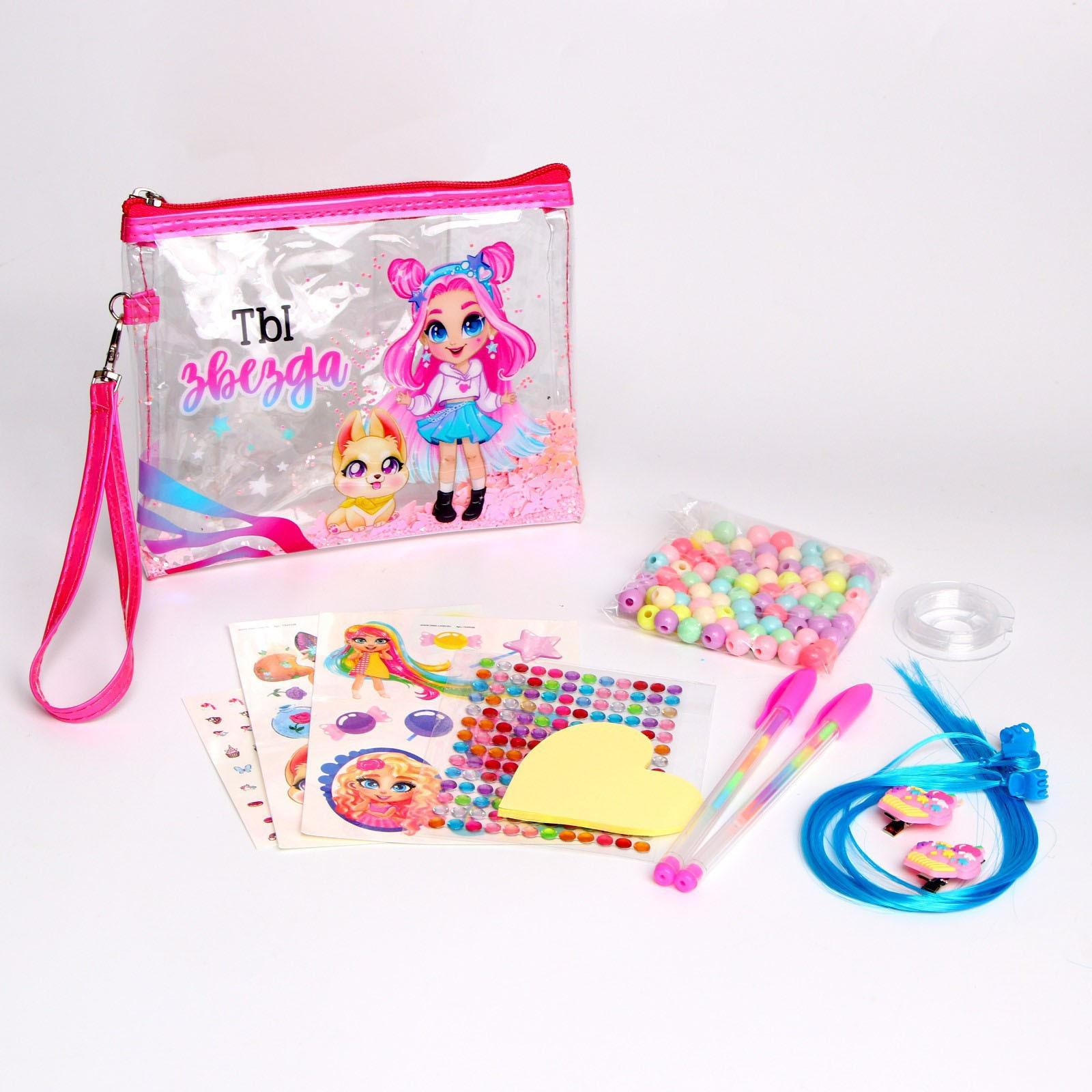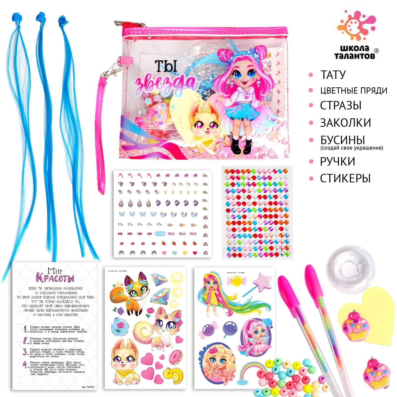 Набор с прядями, тату, стразами, в сумочке