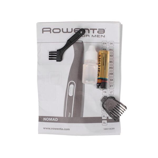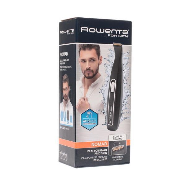 Триммер Rowenta TN 3600 F0 предназначен для стрижки и оформления бороды и усов. В комплектацию входит 2 насадки. Длину волосков можно регулировать путем смены насадок. Минимальная длина может варьироваться от 3 мм, а максимальная длина составляет 6 мм. Для стрижки используются титановые лезвия, ширина ножей приравнивается к 20 мм. Триммер Rowenta TN 3600 F0 оформлен в черном цвете, смотрится стильно и брутально. Корпус водонепроницаемый, поэтому устройство можно мыть под струей воды после использования, не опасаясь, что это приведет к поломке. Также в комплекте прилагается специальная щеточка для очистки ножей. Триммер работает от элементов питания типа АА, которых хватит на 167 минут использования устройства.