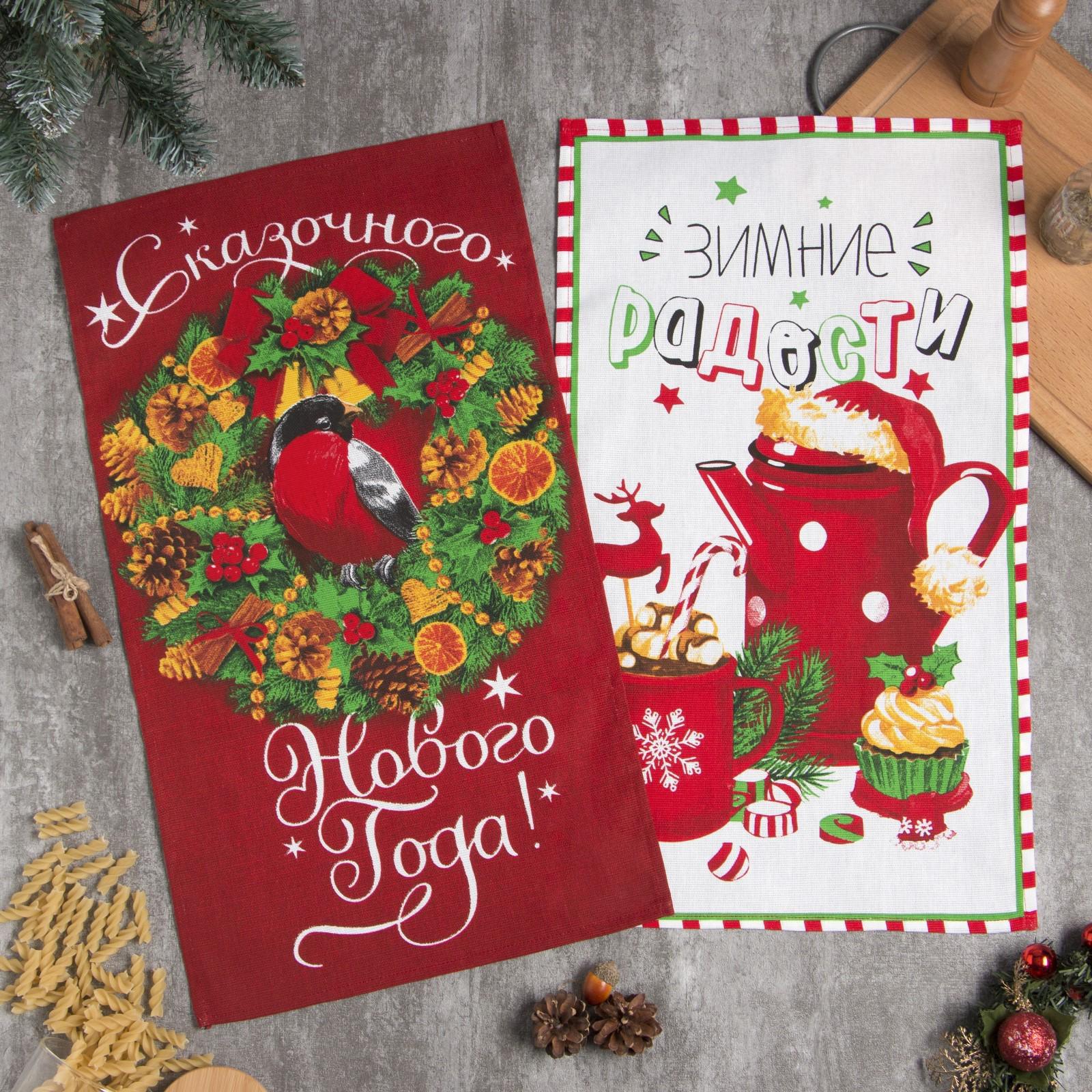 Набор кухонных полотенец Доляна «Зимние радости» 35х60см-2шт, 100% хл