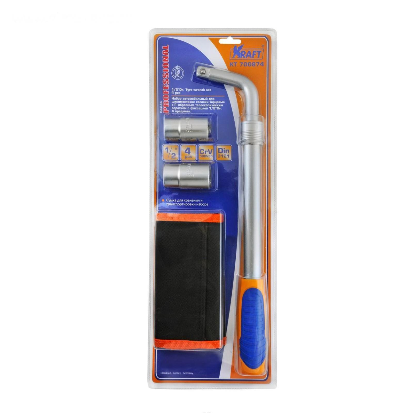 Набор торцевых головок KT700874, 1/2", телескопический вороток, в сумке, 4 предмета