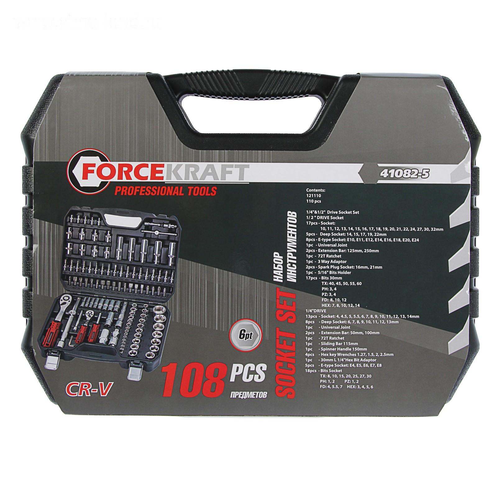 Набор инструментов FORCEKRAFT FK-41082-5, 108 предметов, 1/2", 1/4"