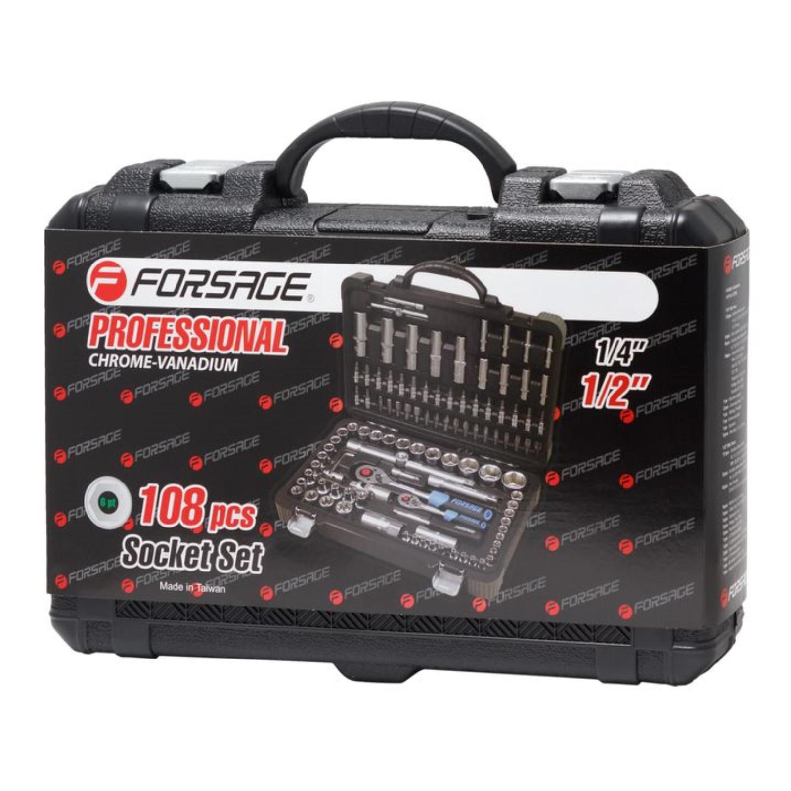 Набор инструмента Forsage F-41082-5, 1/4", 1/2" (6-гранные), 4-32 мм, 108 предметов
