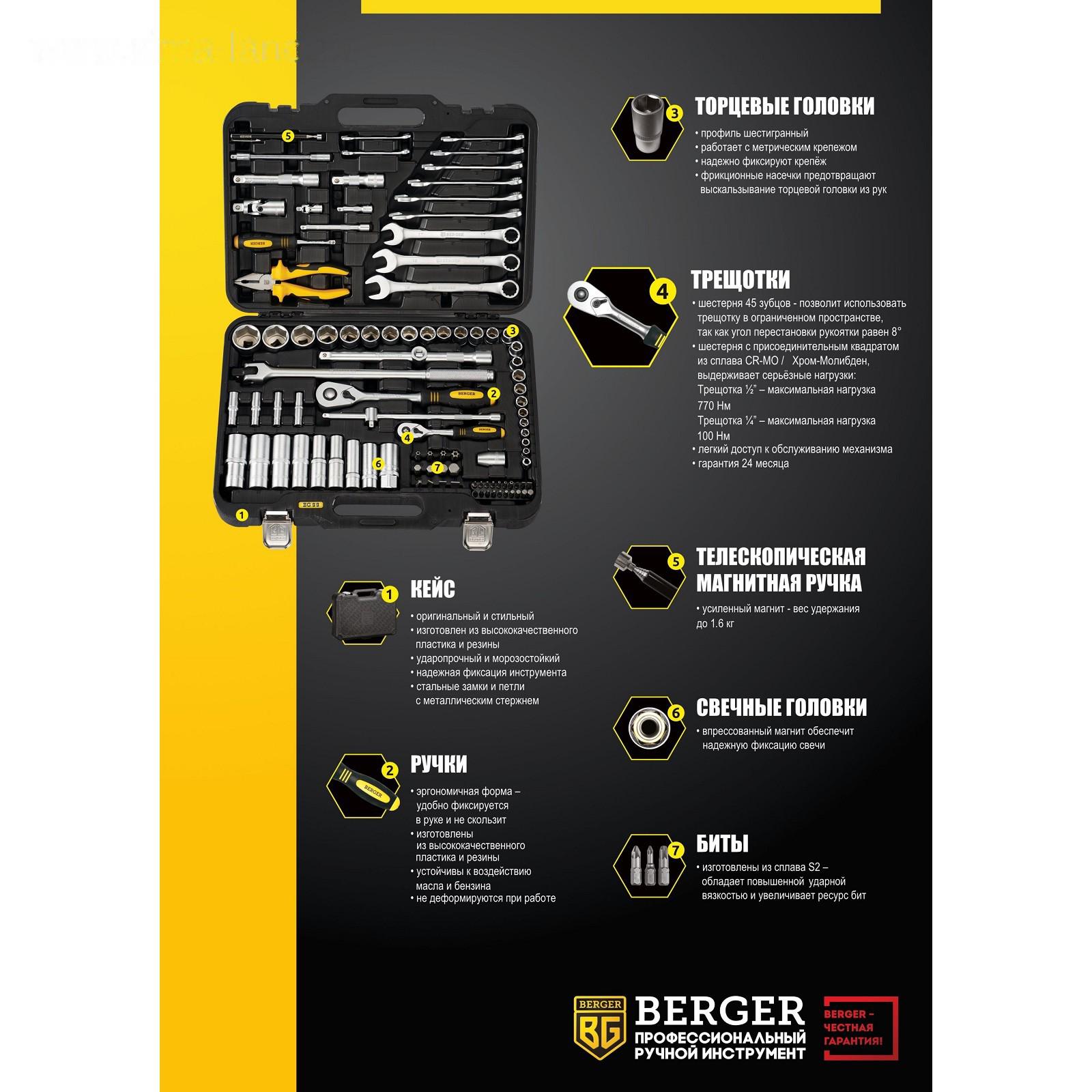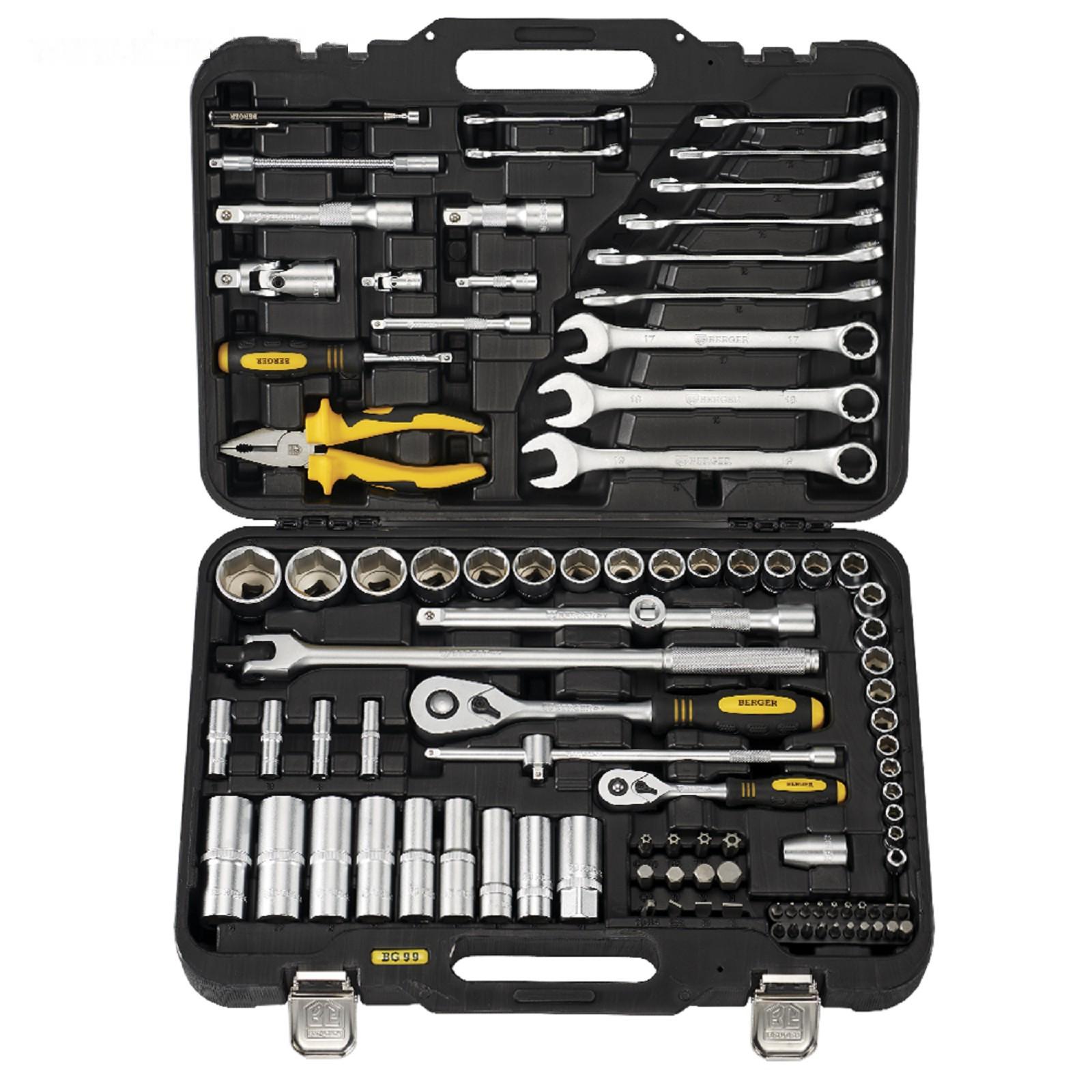 Набор инструментов BERGER BG099-1214, универсальный, 99 предметов, 1/2", 1/4", пласт. кейс