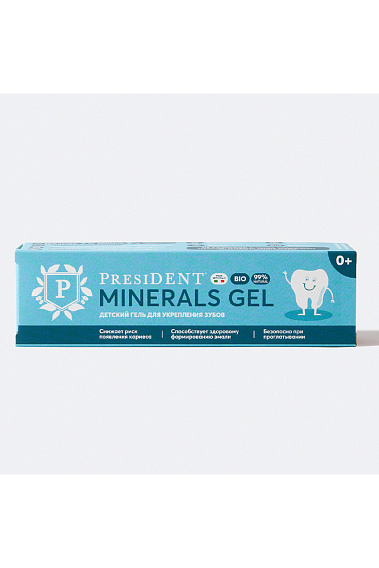 Детский гель для укрепления зубов PRESIDENT® Minerals gel 0+ снижает риск появления кариеса и способствует здоровому формированию эмали.