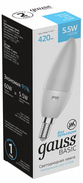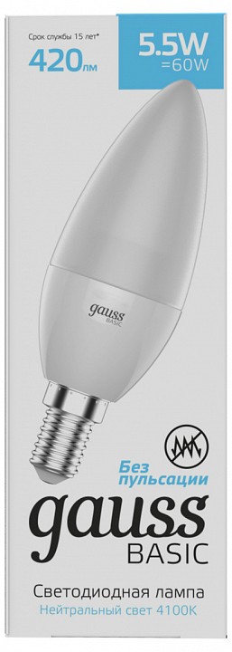 Лампа светодиодная Gauss Basic E14 5.5Вт 4100K 1033126