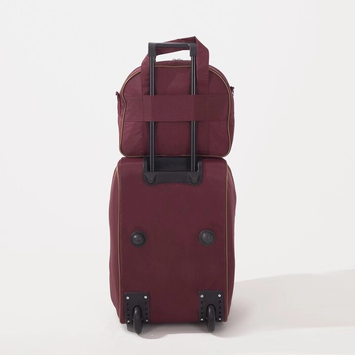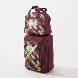Чемодан малый 20" с сумкой, отдел на молнии, 3 наружных кармана, с расширением, цвет бордовый