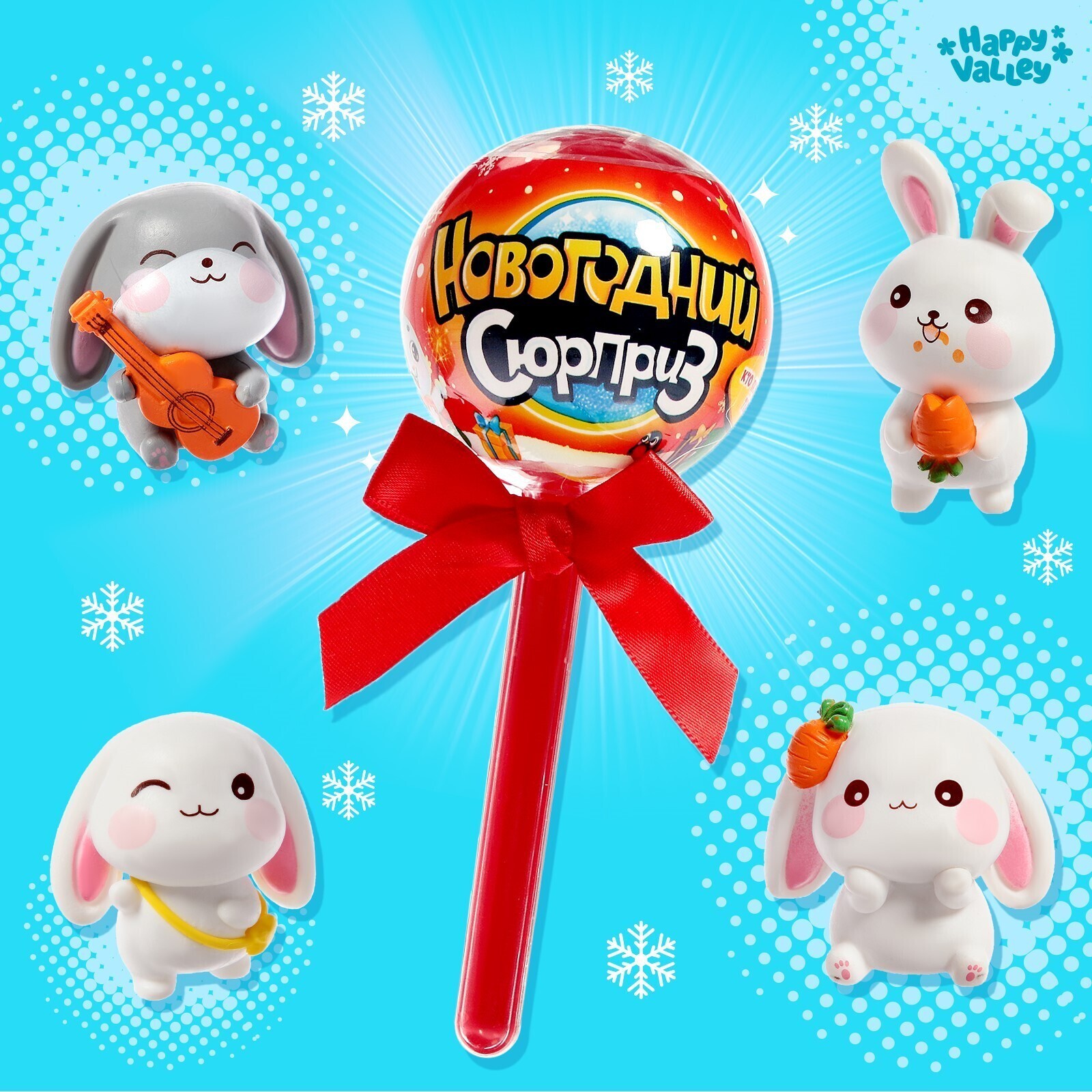 Игрушка на палочке «Новогодний сюрприз», милые зайки, МИКС