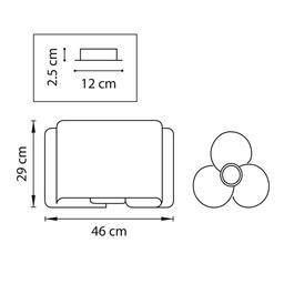 Высота min-max (см):29 Ширина (см):46 Вес (кг): 4,7 Кол-во ламп: 3хE27 Мощность max (W):40 Цвет основания/цвет стекла или абажура: БЕЛЫЙ;