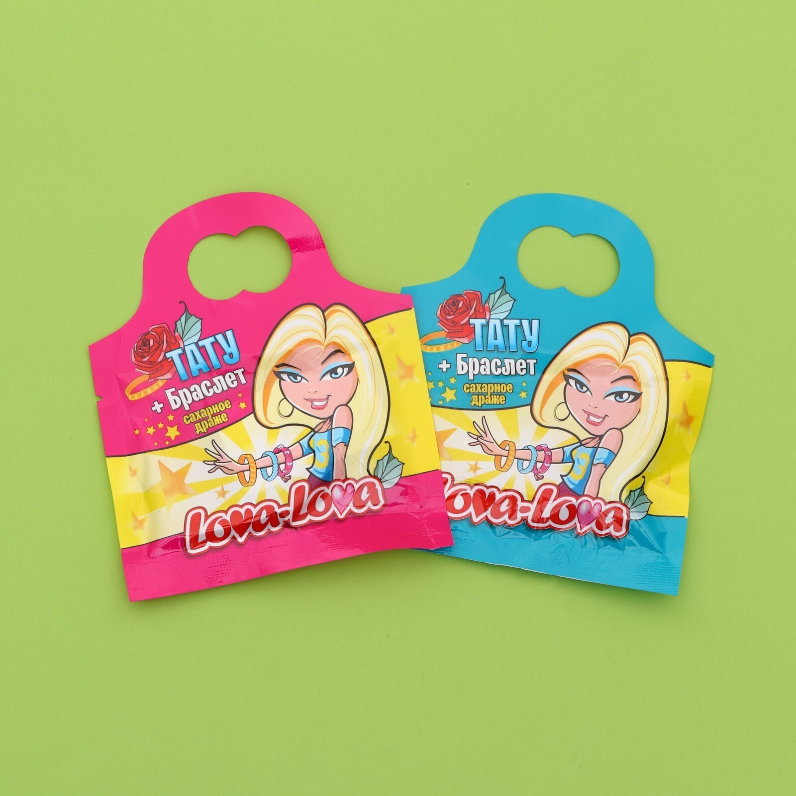 Оригинальный сладкий подарок для мальчиков и девочек! Сахарное драже "Lova-Lova" с татуировкой. Конфеты в индивидуальной упаковке с ярким дизайном, которую можно взять с собой на прогулку, в поездку, путешествие, в детский сад или школу. Такое угощение придется по вкусу любому сладкоежке! Прекрасный подарок детям на любой праздник.