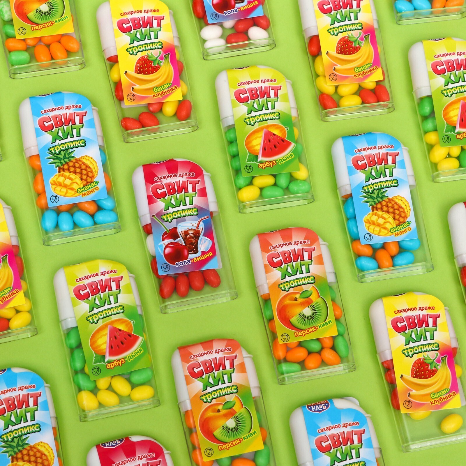 Оригинальный сладкий подарок для мальчиков и девочек! Сахарное драже "Свит хит" с насыщенным тропическим вкусом. Конфеты в индивидуальной упаковке с ярким дизайном, которую можно взять с собой на прогулку, в поездку, путешествие, в детский сад или школу. Такое угощение придется по вкусу любому сладкоежке! Прекрасный подарок детям на любой праздник.