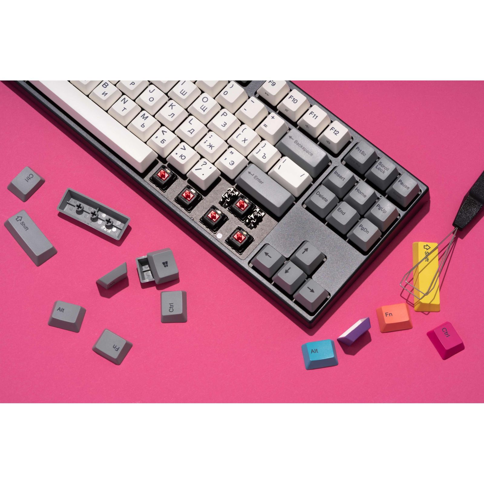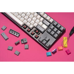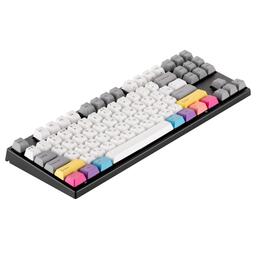 Varmilo CMYK – це класична і водночас ефектна механічна клавіатура, оснащена яскравими клавішами, які створюють унікальну дизайнерську філософію пристрою. Основний колір моделі CMYK – холодний білий, який плавно переходить у сірий, а головну візуальну стилістику пристрою створюють яскраві клавішні ковпачки у жовтому, рожевому, фіолетовому, помаранчевому та блакитному кольорах. Справжній арт-дизайн у сучасних технологіях.