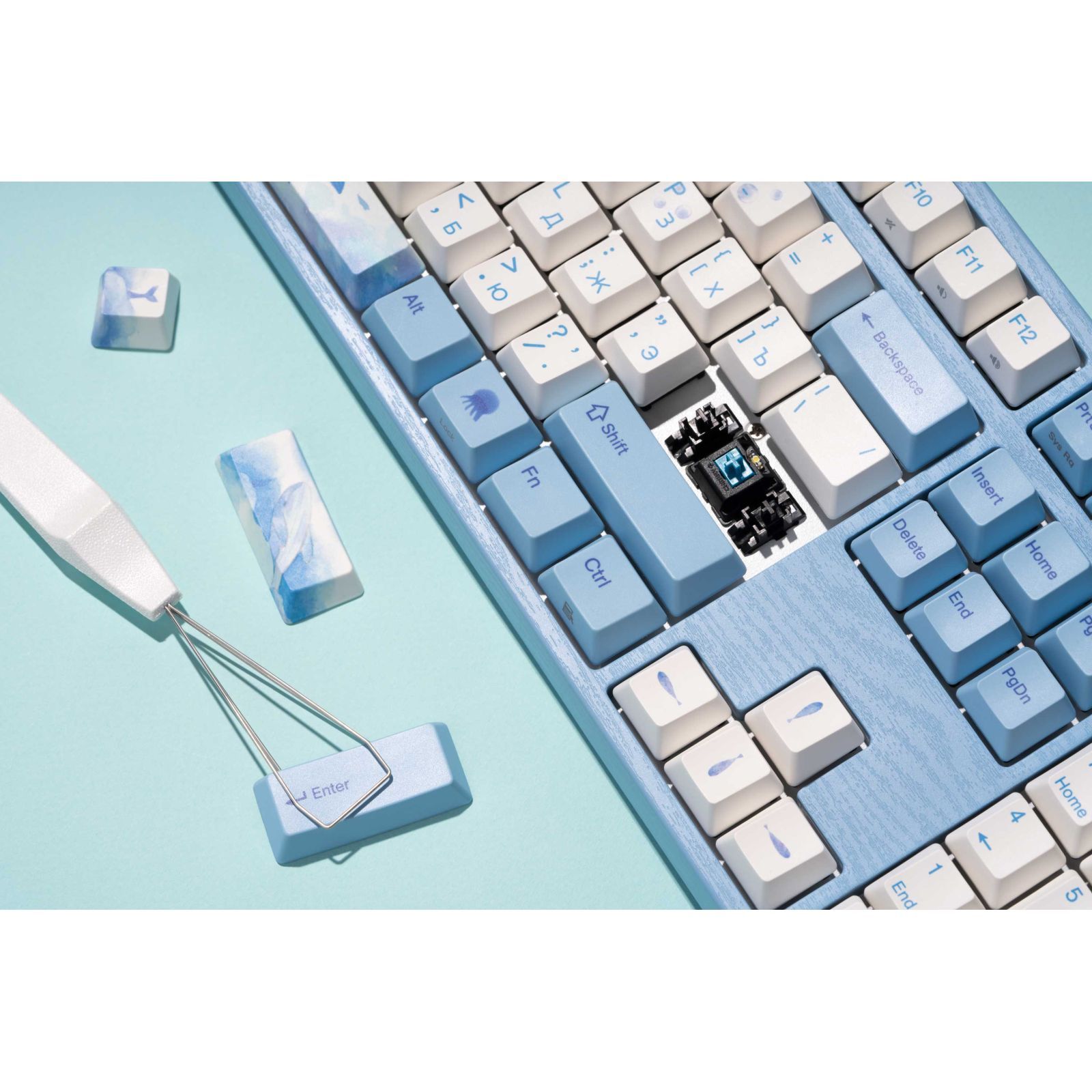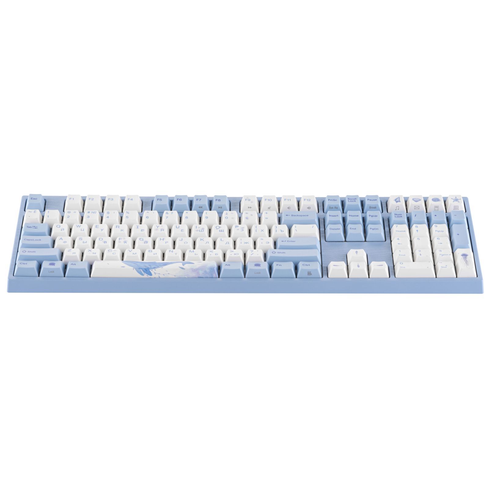 Varmilo Sea Melody – це надихаюча історія морської гладі, реалізована через унікальний дизайн пристрою. Механічна клавіатура для митців, розробників та гравців в унікальному дизайні, що поєднав у собі ніжні лазурові відтінки морської блакиті з класичними білими клавішами. Це деталізація надихаючого підводного світу через художній розпис на елементах клавіатури хвиль, медуз, китів та морської гладі.