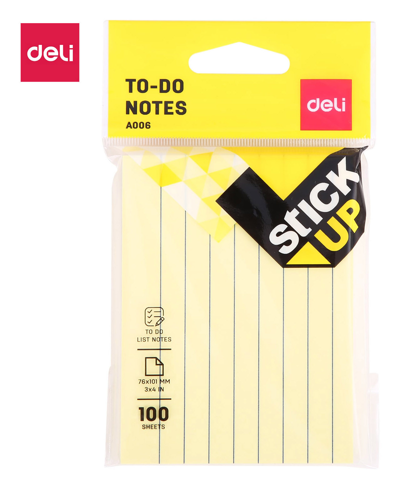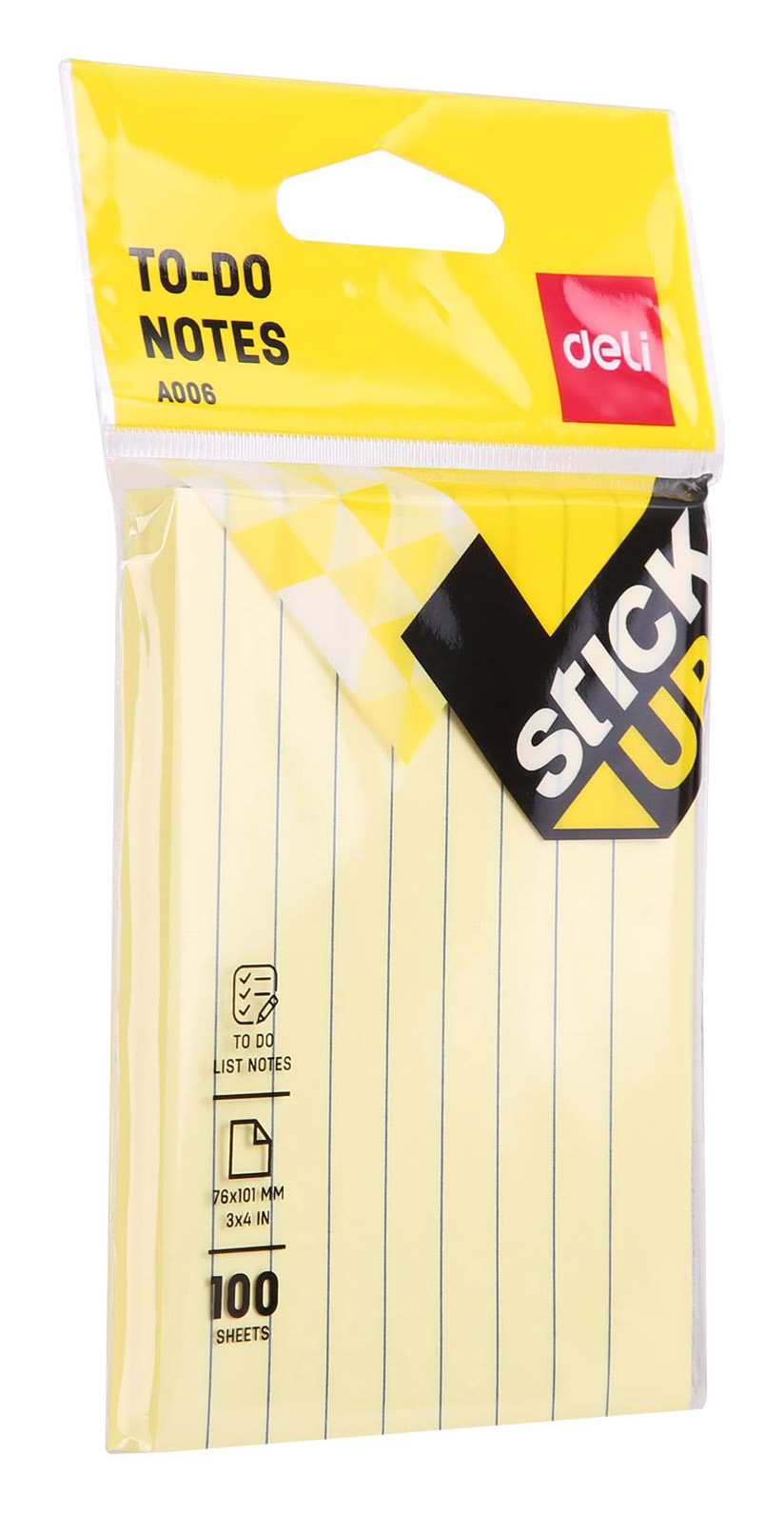 Блок самоклеящийся бумажный Deli EA00652 76x101мм 100лист. желтый в линейку