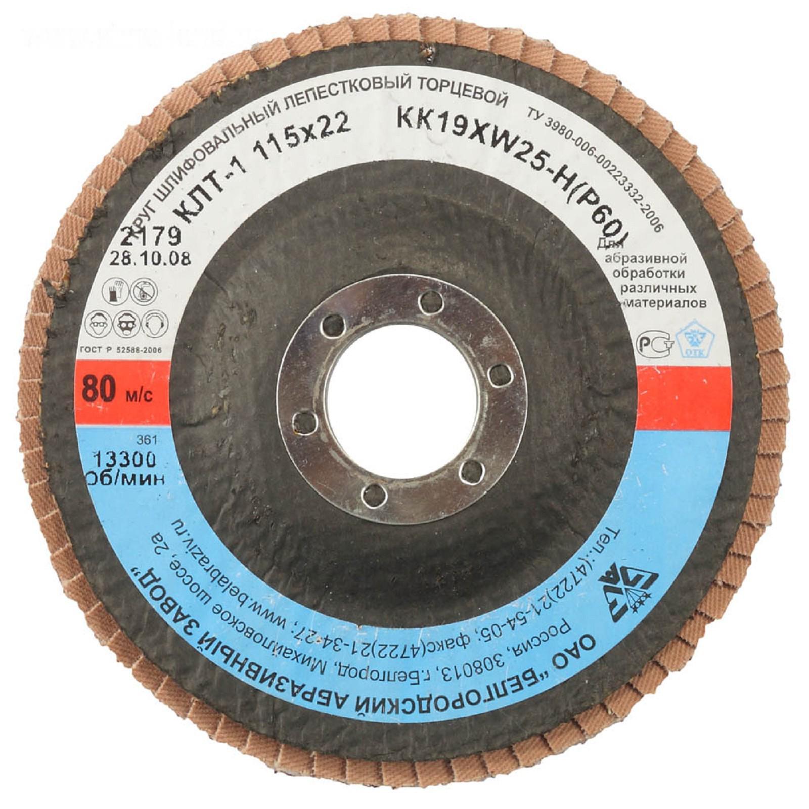 Круг лепестковый "БАЗ" 36563-115-60, торцевой, дерево, металл, 22.2х115 мм, тип КЛТ 1, Р60