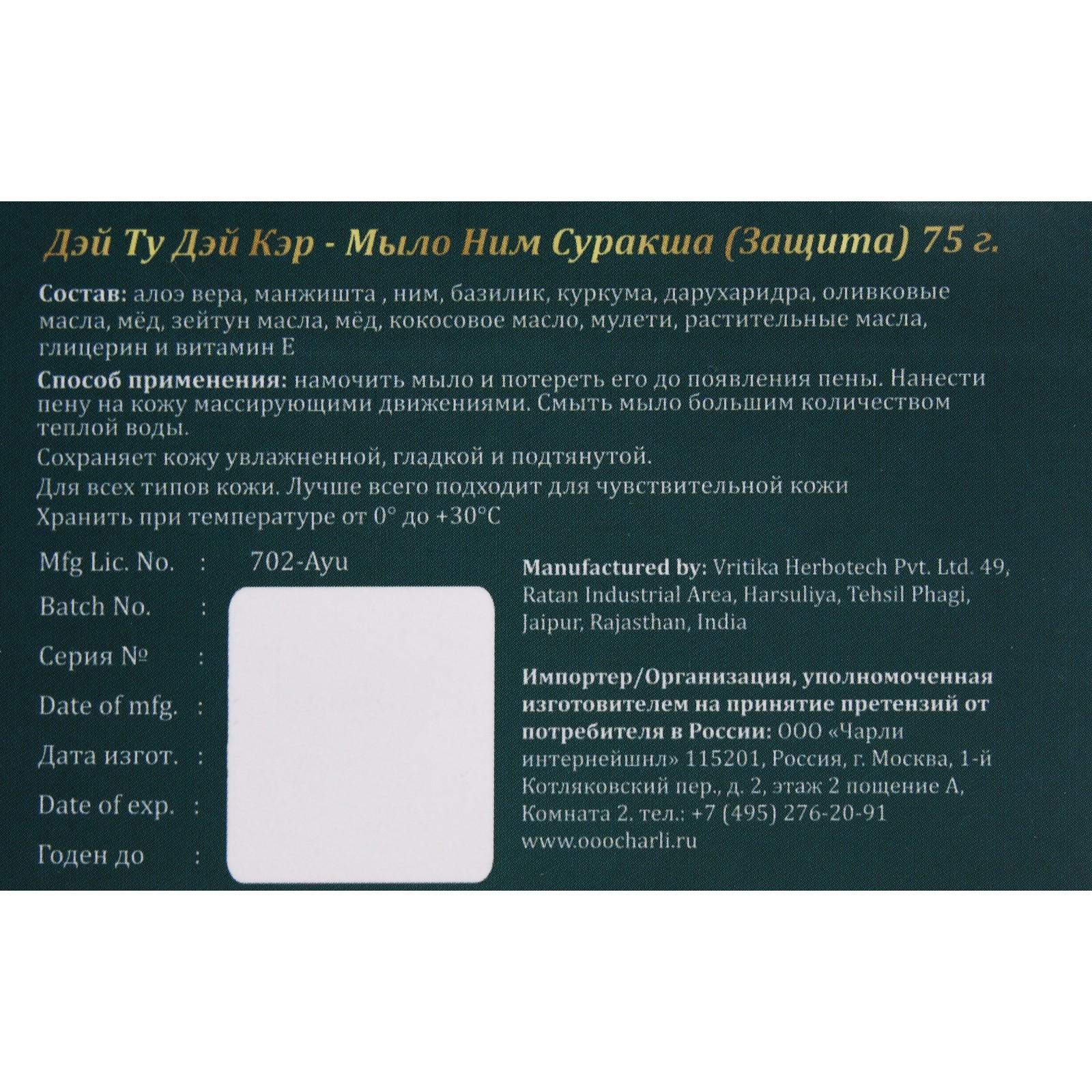 Мыло аюрведическое натуральное Дэй Ту Дэй Кэр ним суракша, 75 г