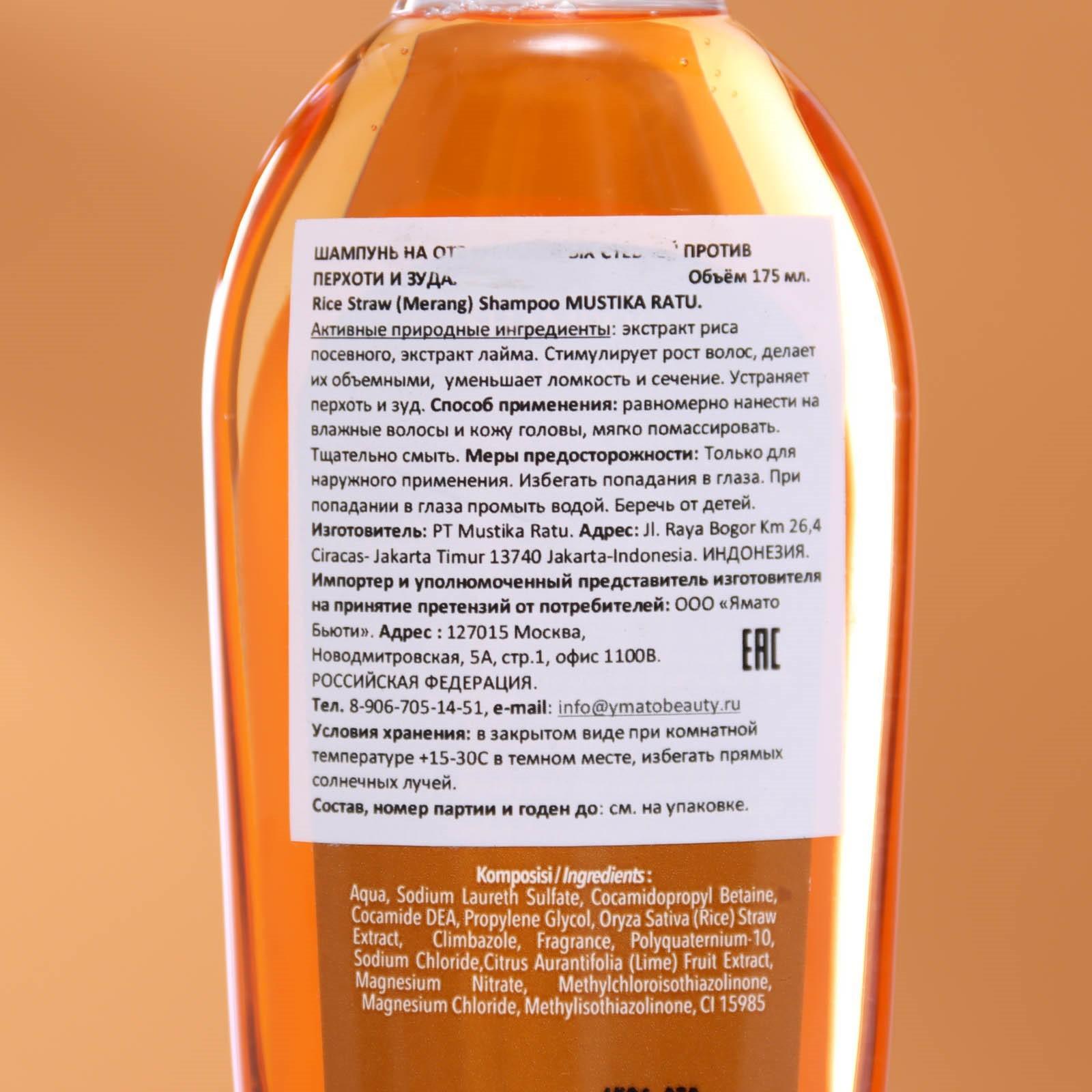 Шампунь Mustika Ratu на отваре рисовых стеблей, против перхоти и зуда, 175 мл