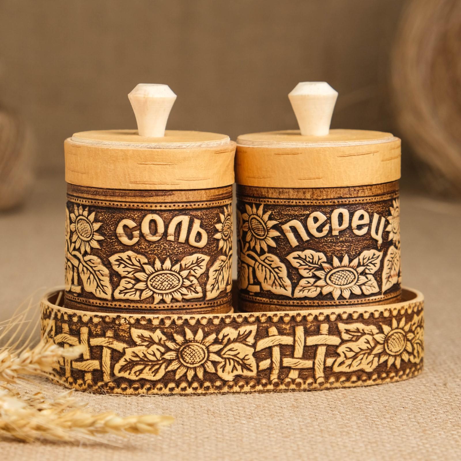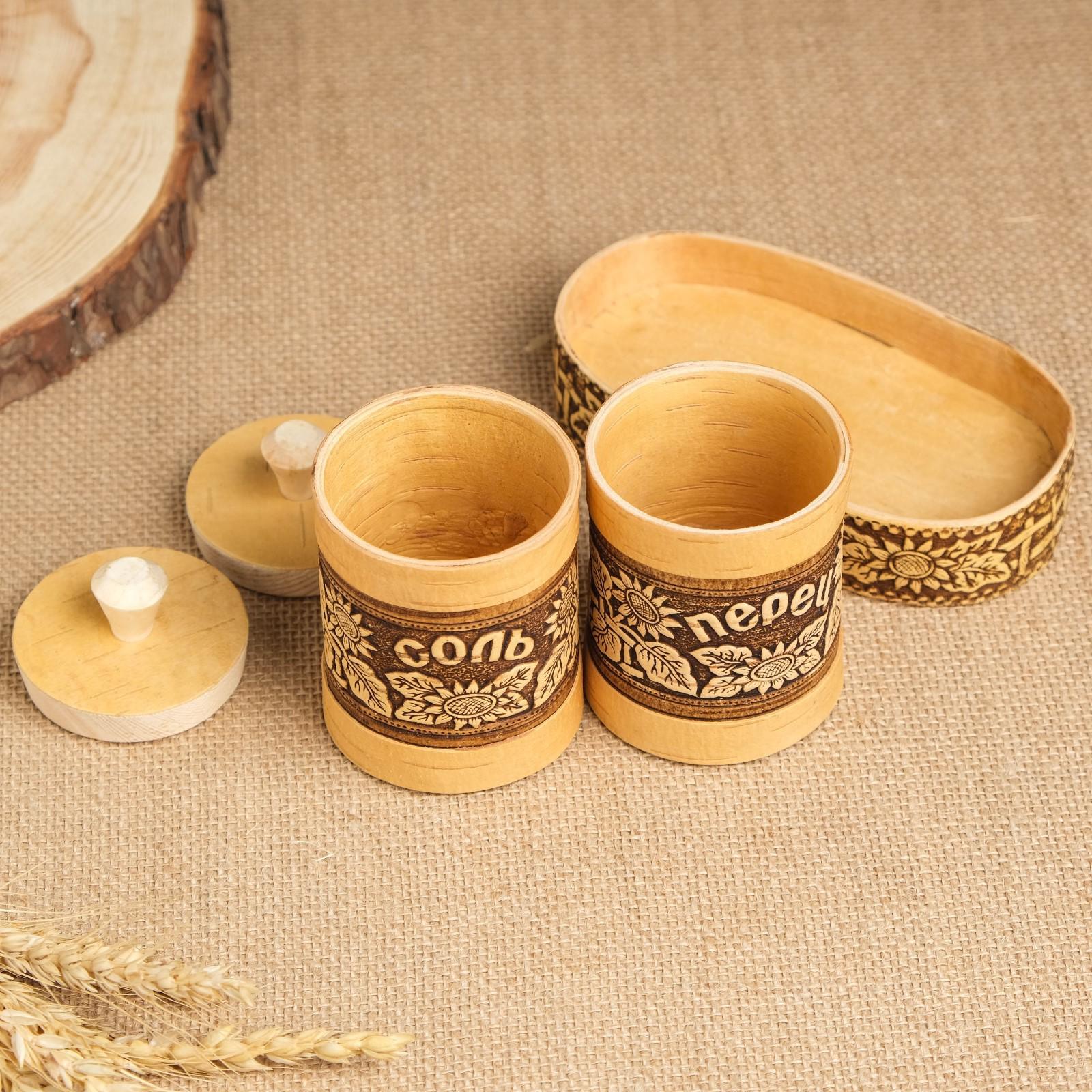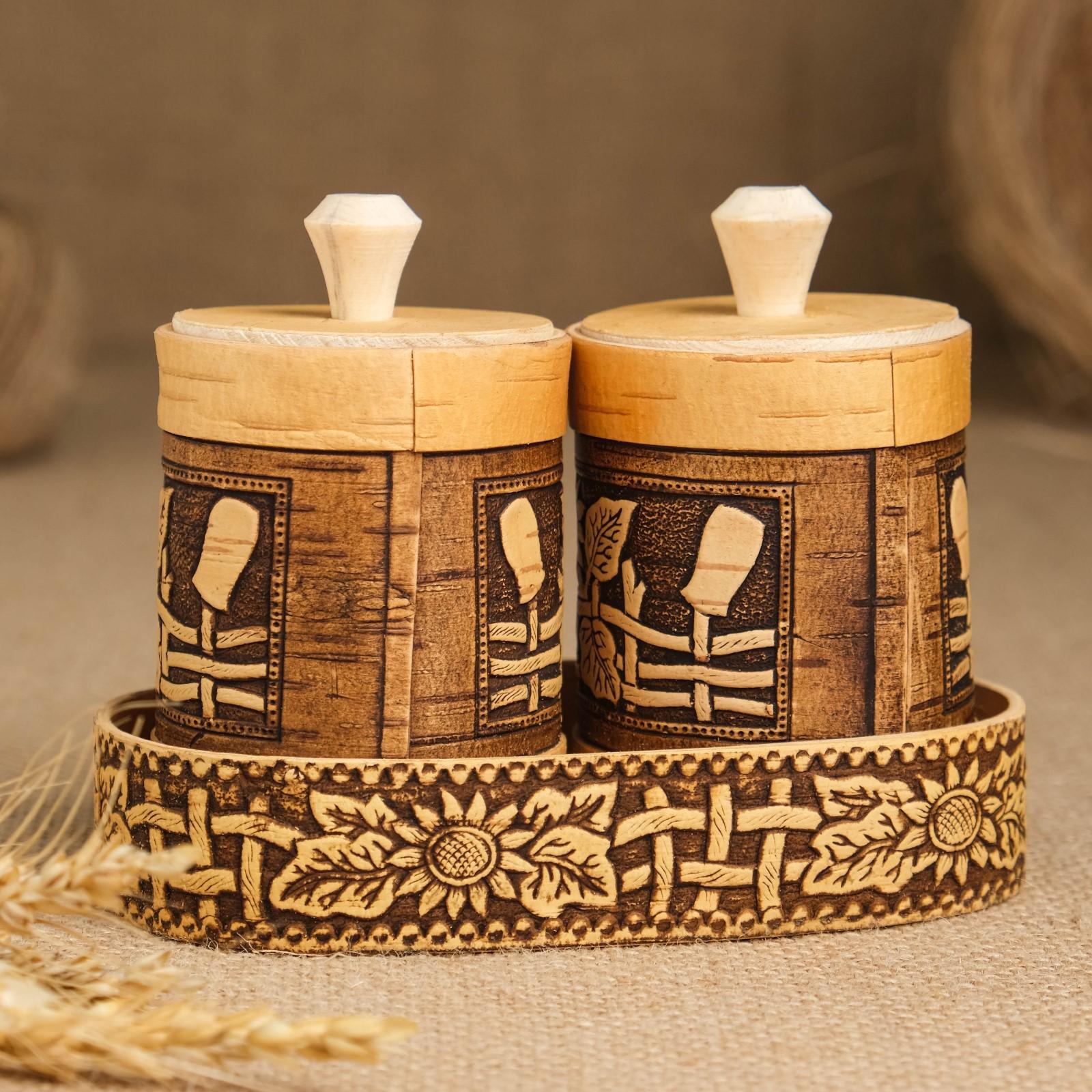 Набор туесов для специй, двойной, 14х8х10,5 см, береста
