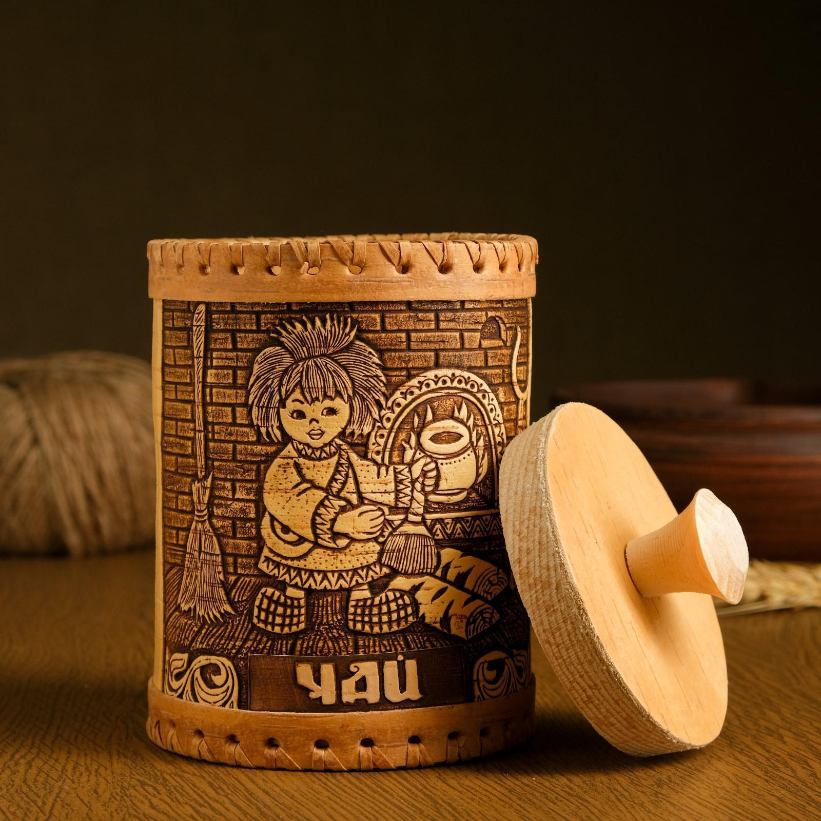 Туес "Домовенок. Чай", 10х10х15 см, береста