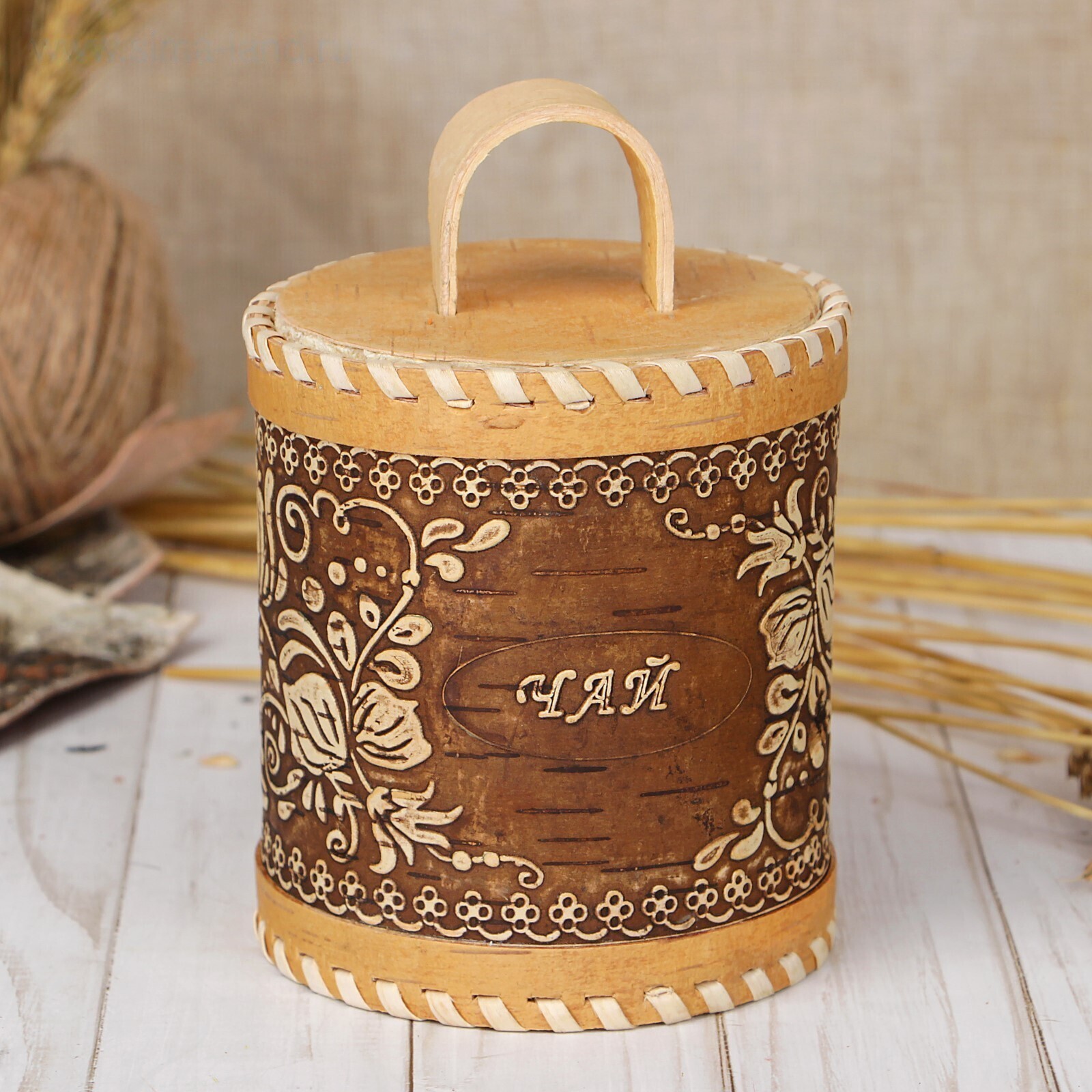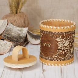 Туес «Цветы», чай, d=10 см, береста