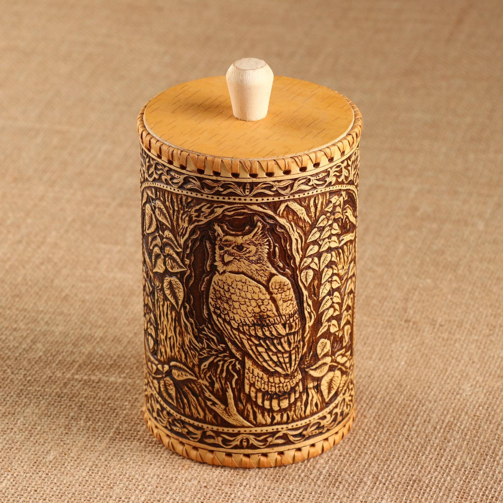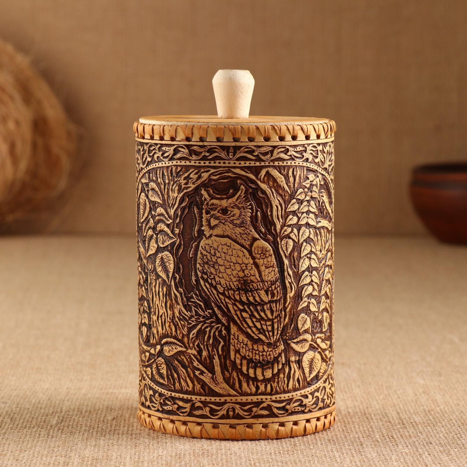 Туес "Филин", 10х10х17см, береста