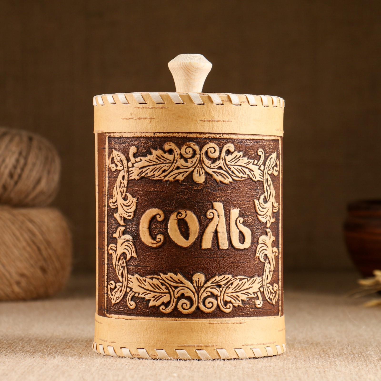 Туес "Узорные. Соль", 10х10х14 см, береста