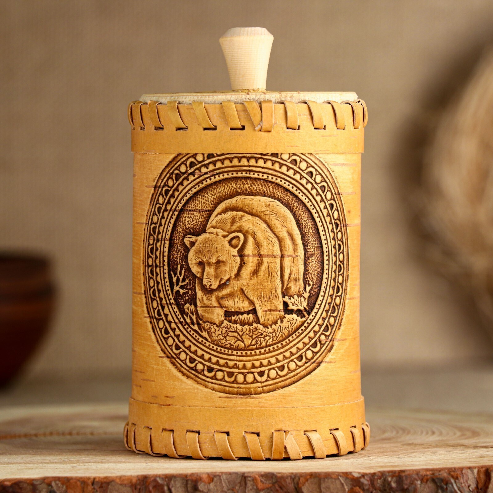 Пластичность и лёгкость бересты позволяет мастерам создавать витиеватые узоры и мелкие детали, поэтому берестяная посуда украшает интерьер.