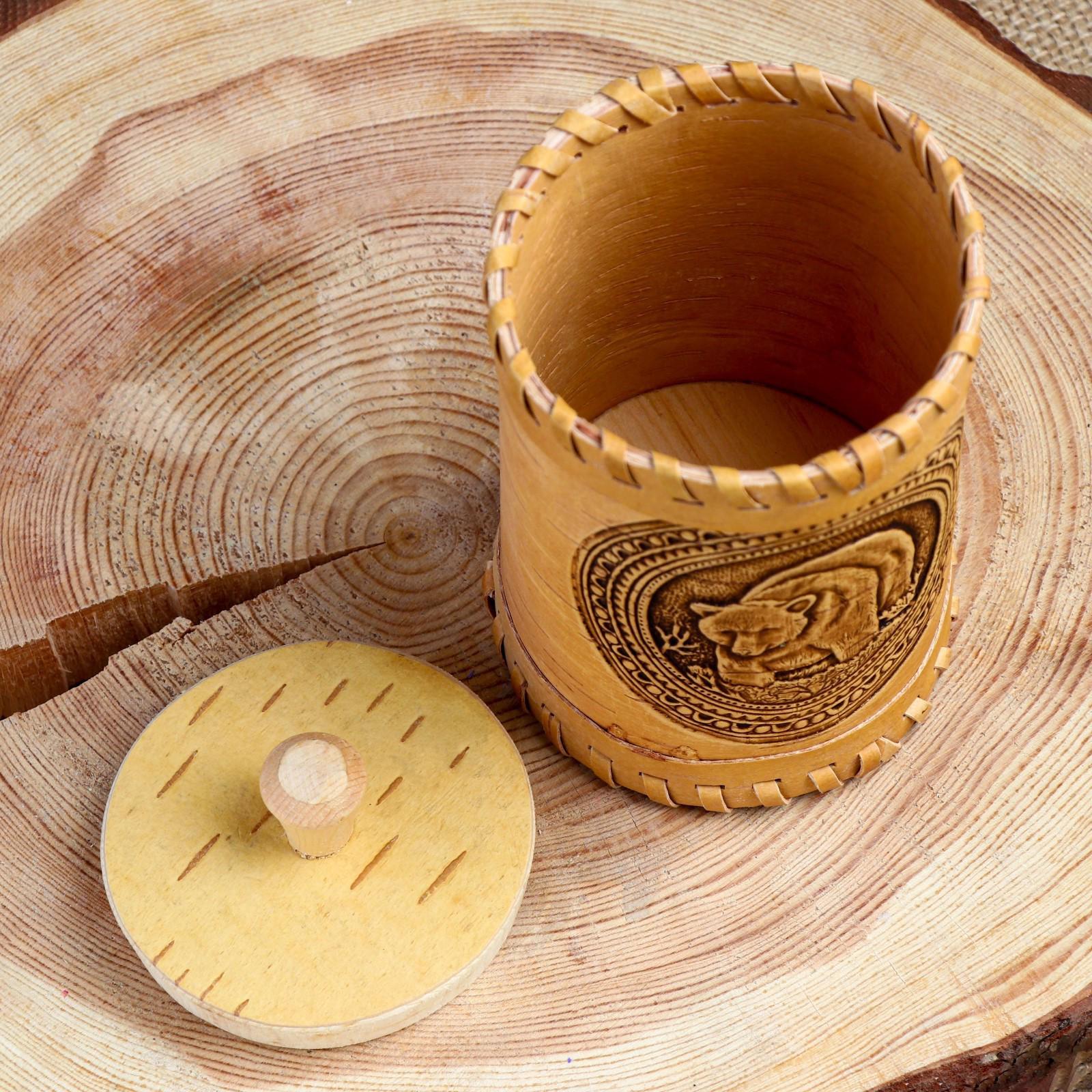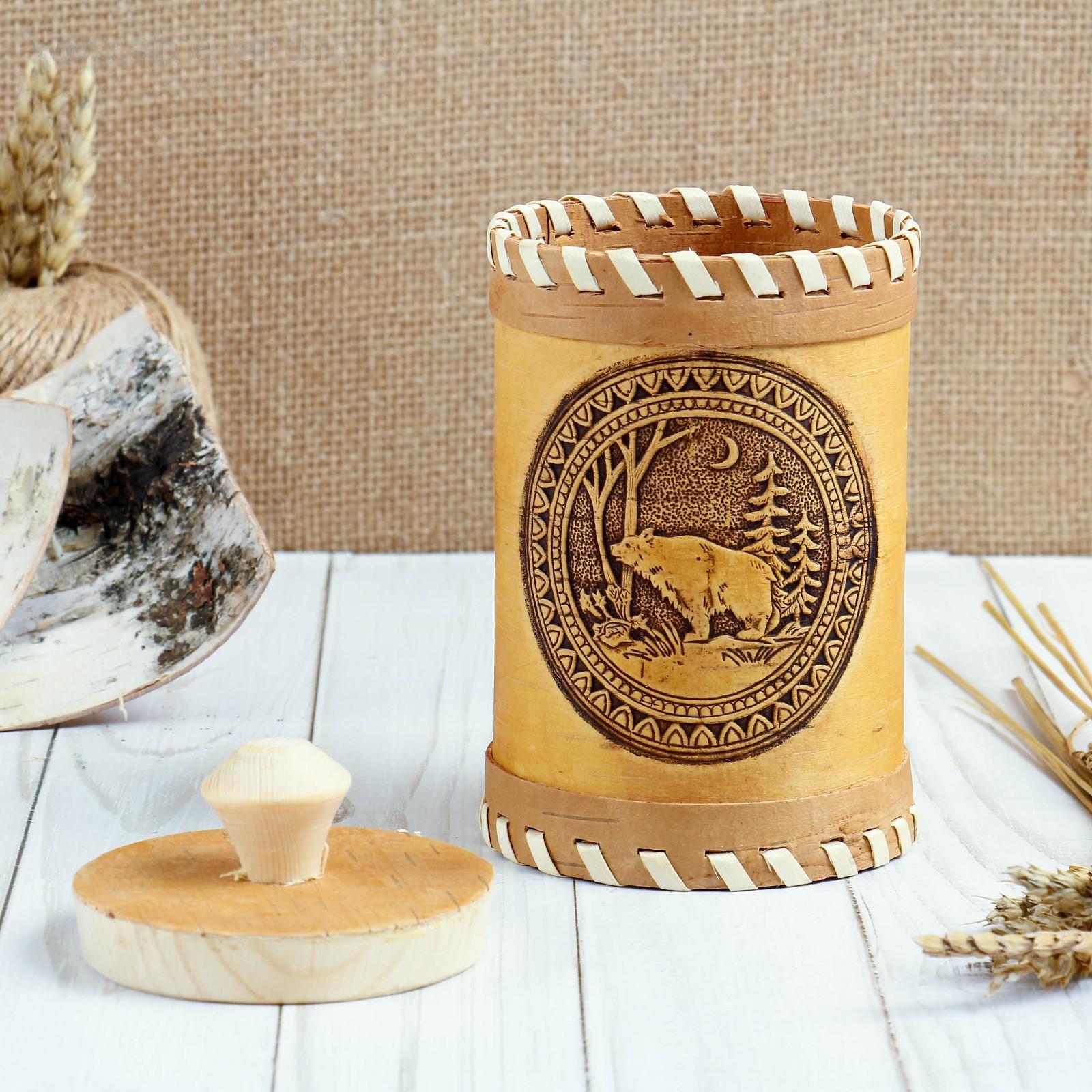 Туес «Медведь», 8×8×12, береста