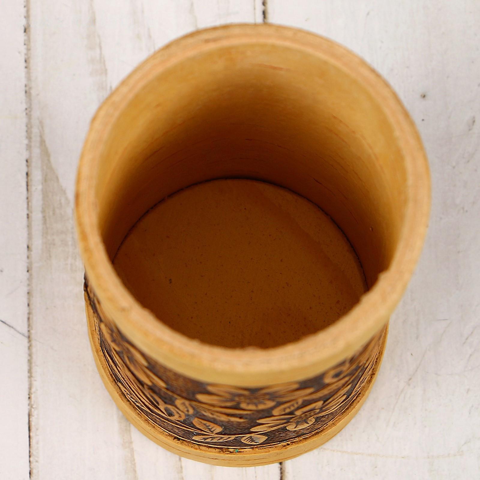 Туес «Цветы», высокий, 6×6×12 см, береста