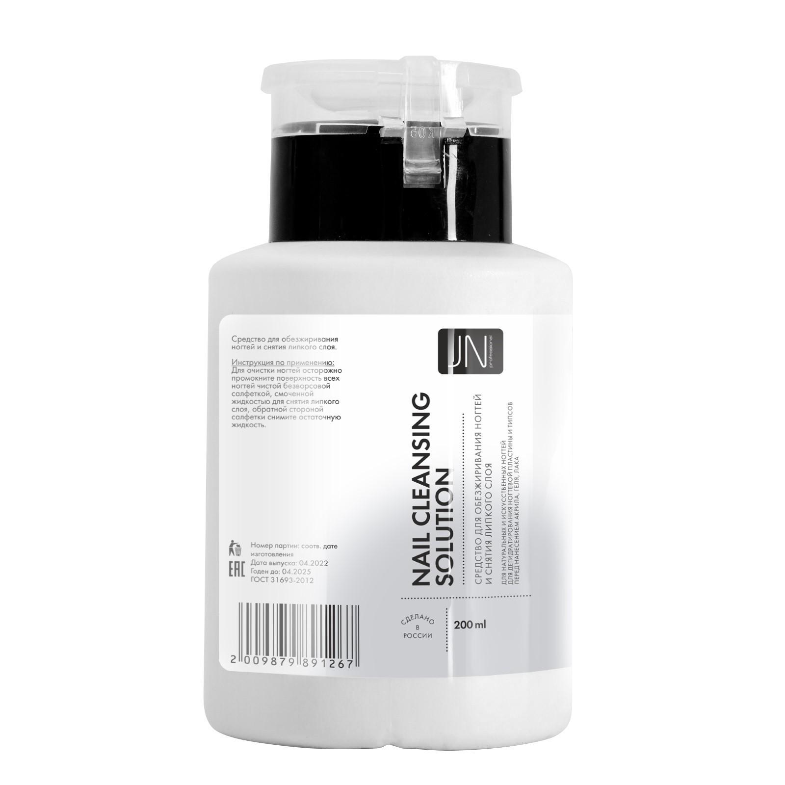 Средство для обезжиривания ногтей и снятия липкого слоя JN, с помпой для дисков, 200 мл