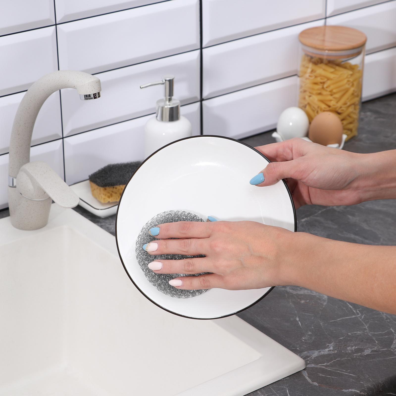 Металлические губки для мытья посуды без труда справятся с чисткой сильных загрязнений. Также губка предназначена для мытья посуды, чистки раковин и других сильно загрязненных поверхностей. Легко удаляет сажу, пригар, копоть.