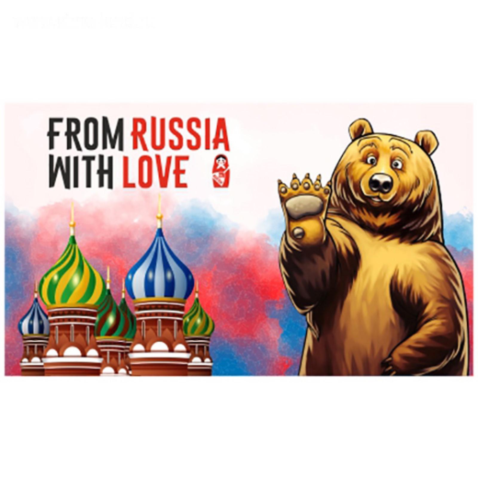 Флаг прямоугольный на липучке "FROM RUSSIA WITH LOVE" медведь, 140х240 мм, S09202001