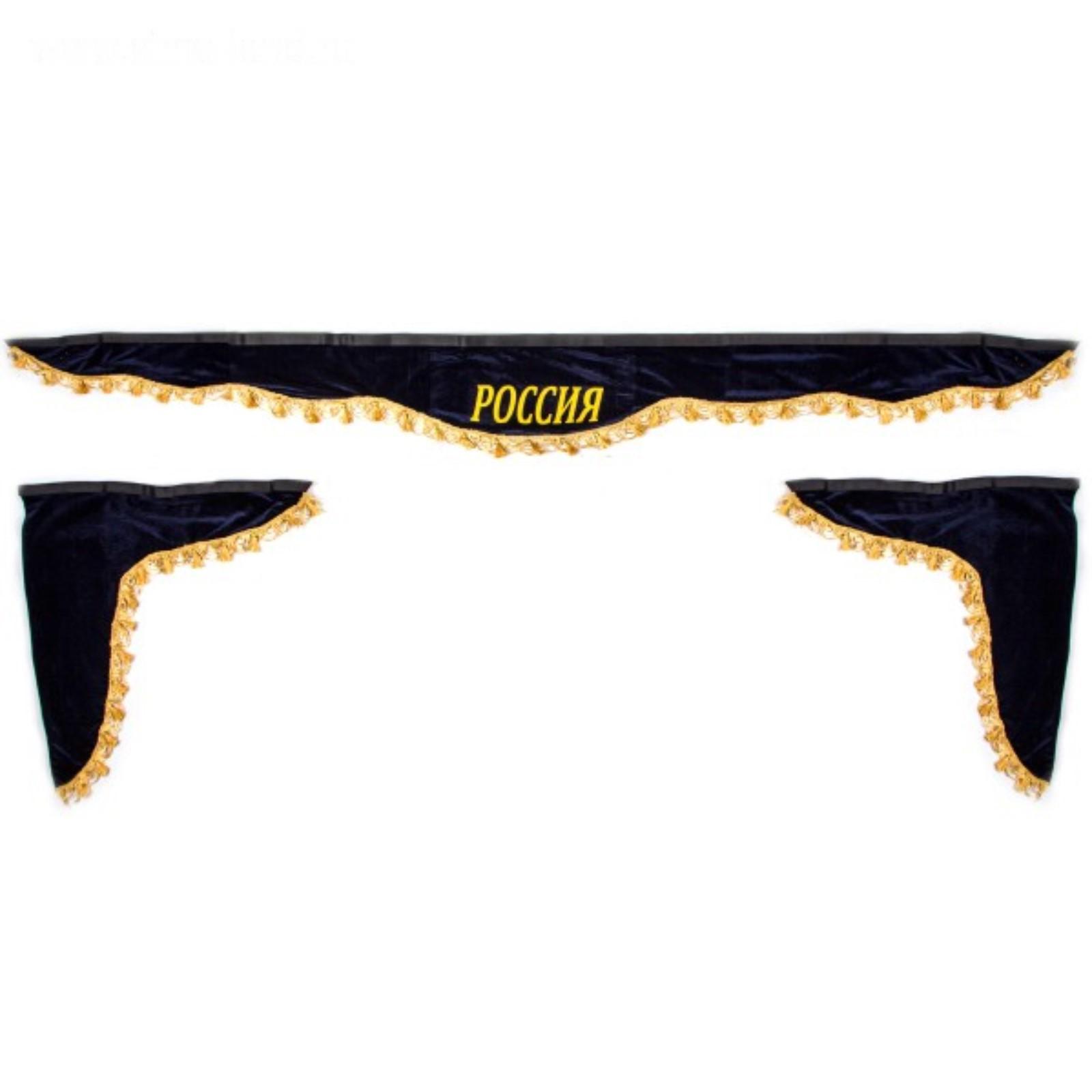 Ламбрекен лобового стекла со шторками Skyway 210см/60х60 см, "Россия", темно-синий, S01203026