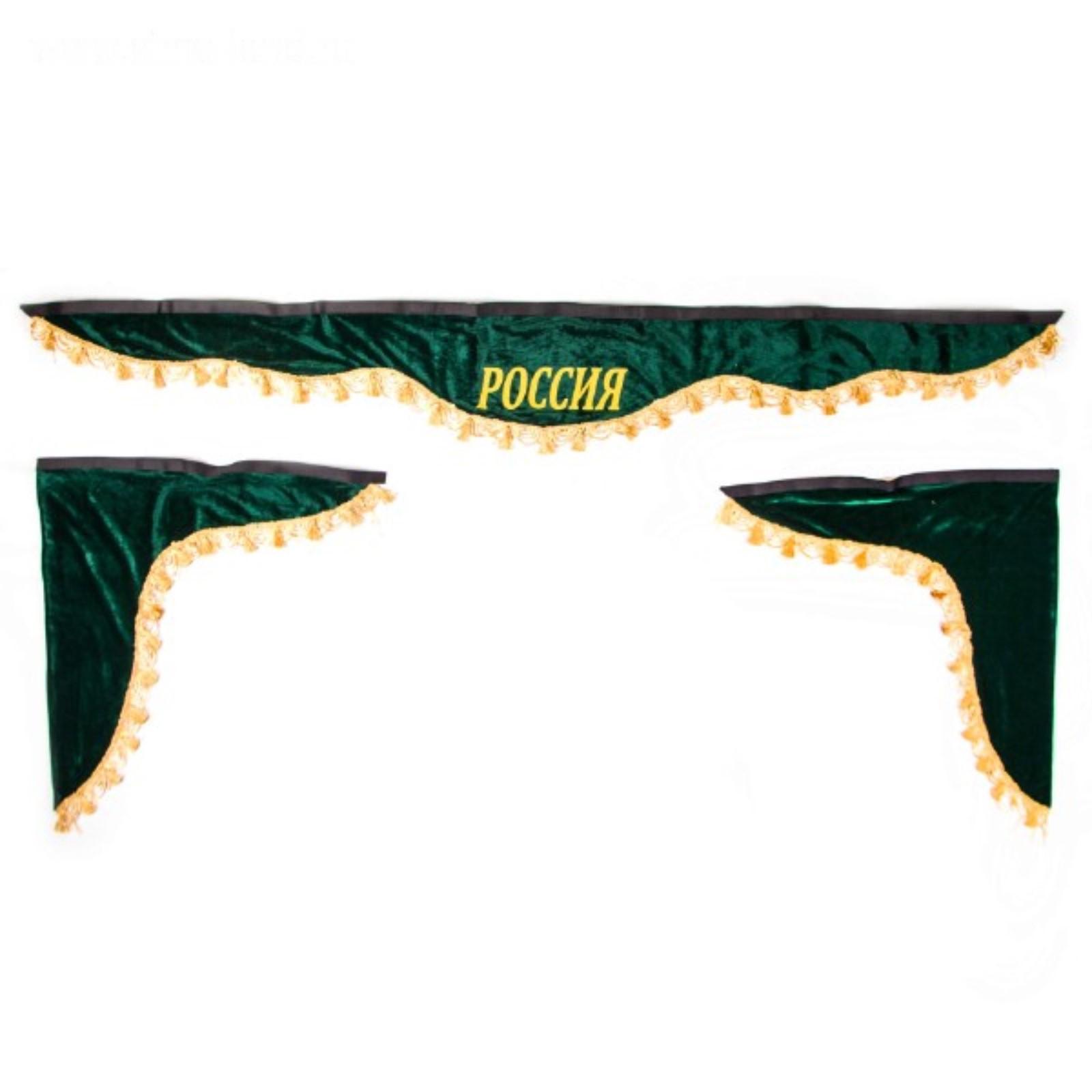 Ламбрекен лобового стекла со шторками Skyway 180см/60х60 см, "Россия", зеленый, S01203014