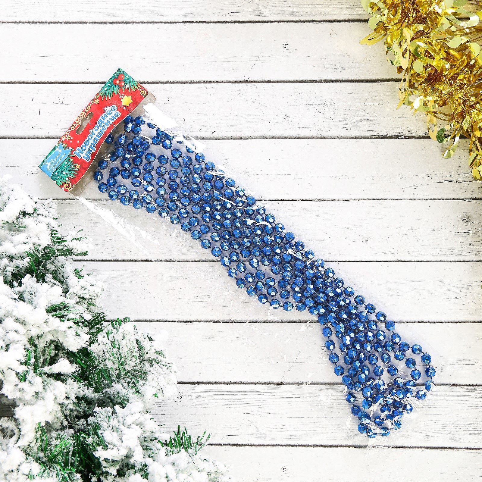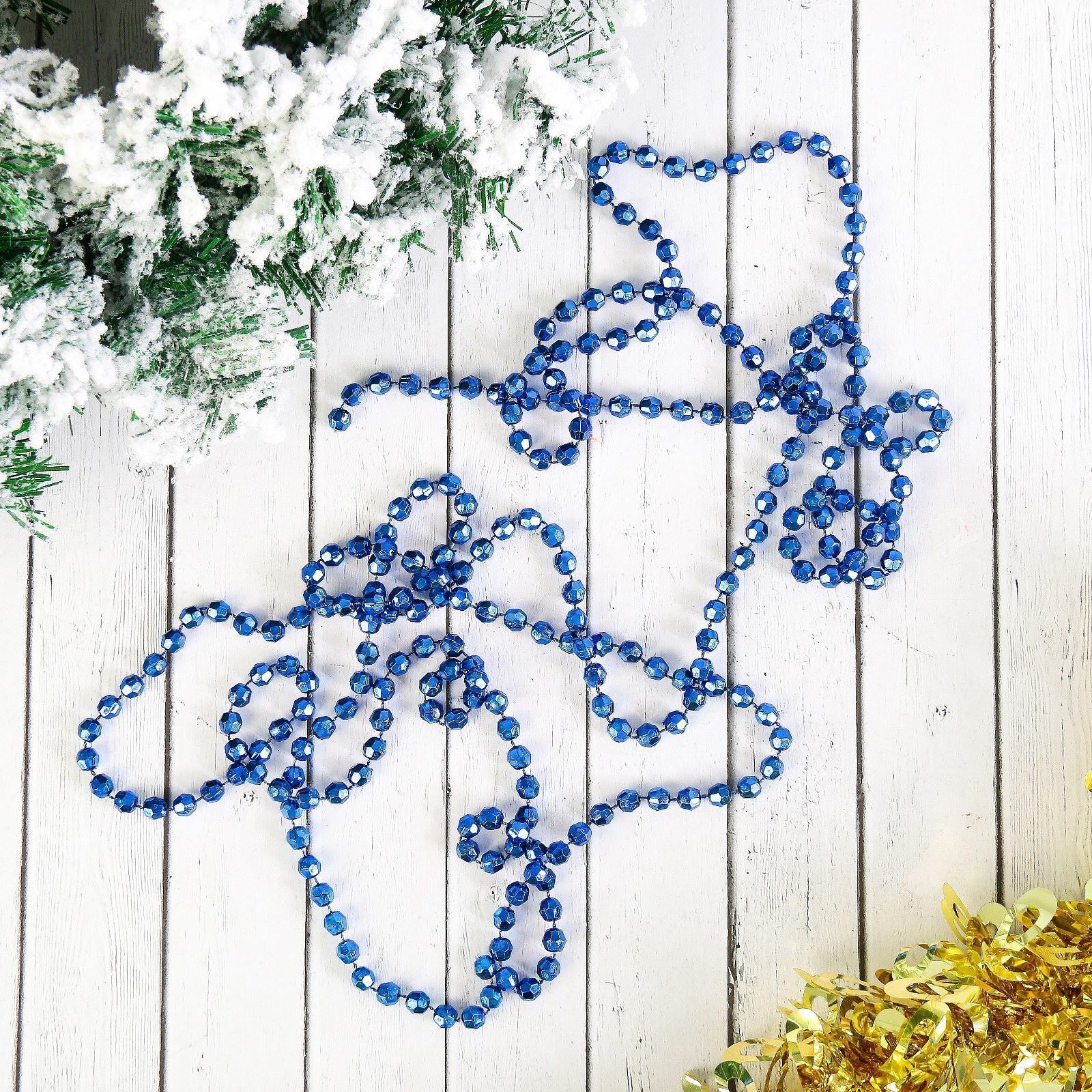 Бусы на ёлку 2,7 м "Шарики с гранями" d-8 мм, синие