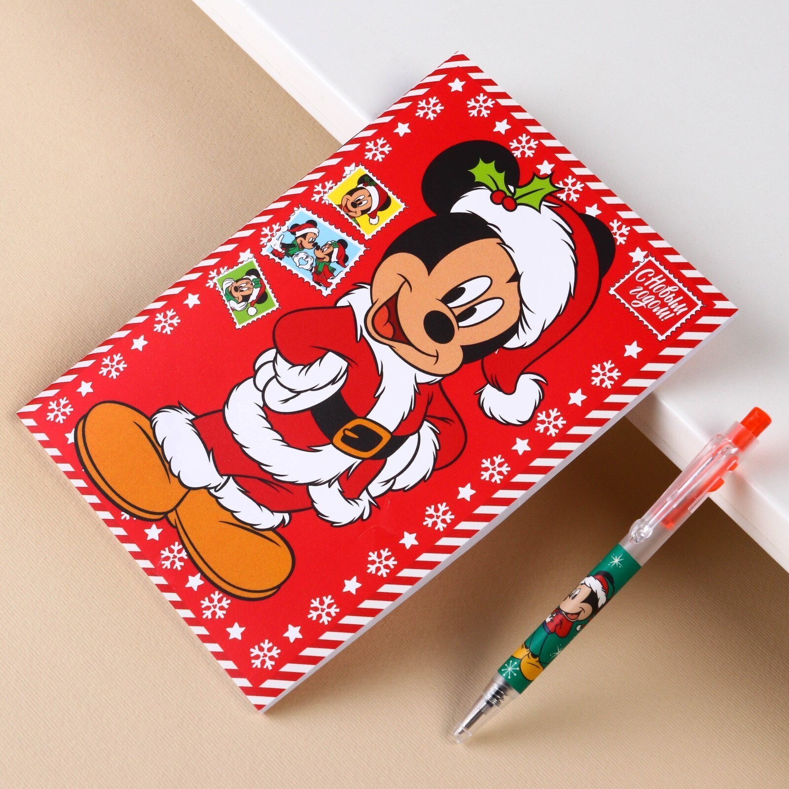 Канцелярский набор "С новым годом", блокнот А5, ручка, наклейки, Микки Маус и его друзья