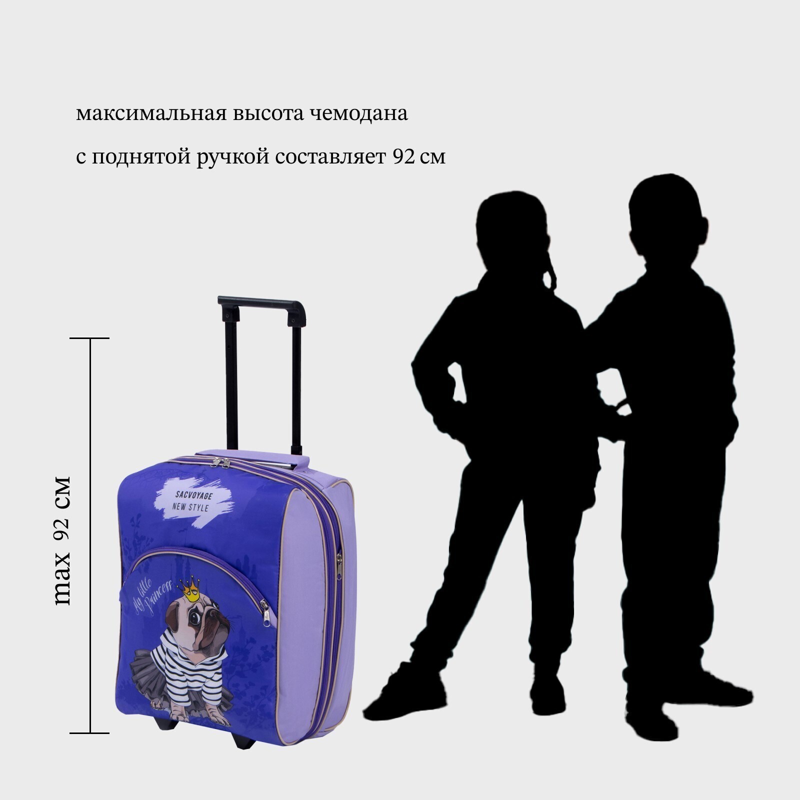 Чемодан малый 16", отдел на молнии, наружный карман, цвет сиреневый, «Мопс в юбочке»