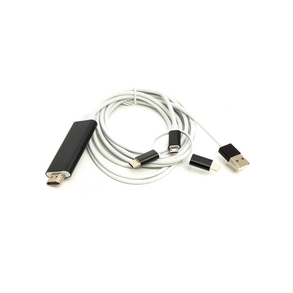 Кабель мультимедійний HDMI (M) to Lightning, Type-C, mirco USB 1.0m PowerPlant (CA911912)