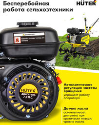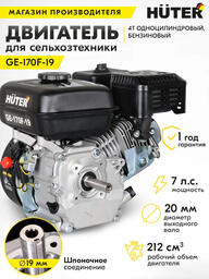 ОписаниеДвигатель бензиновый HUTER GE-170F-19 предназначен для установки на садовую технику и другую технику, для которых подходят двигатели "Под шпонку", к примеру мотоблоки, снегоуборщики, мотопомпы и т.д. Датчик уровня масла. Защищает двигатель от работы без масла.