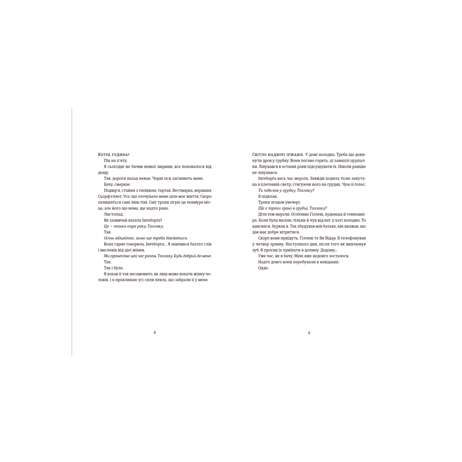 Його завжди називали Толлаком Інґеборґи. Тепер її нема, а ким він є без неї? Чоловіком, який помирає? Тим, кого ненавидять власні діти? Тим, хто опікується Отто, або Оддо-дурником, як його називають сусіди? Чи тим, хто має страшну таємницю, яку міг би (мав би?) сховати разом із собою в домовині?