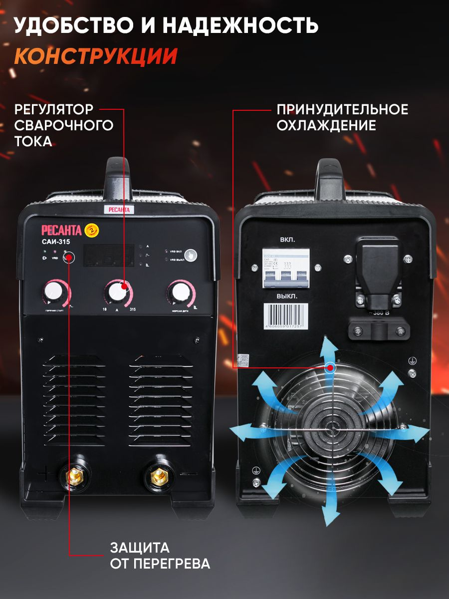 ОписаниеИнверторный сварочный аппарат Ресанта САИ-315 – профессиональный инструмент, помощник в сварочных работах любой сложности на производстве. Подойдет для любого, от новичка до профессионала, благодаря своей простоте в использовании. Регулировка сварочного тока в широком диапазоне значений (20 - 315А).