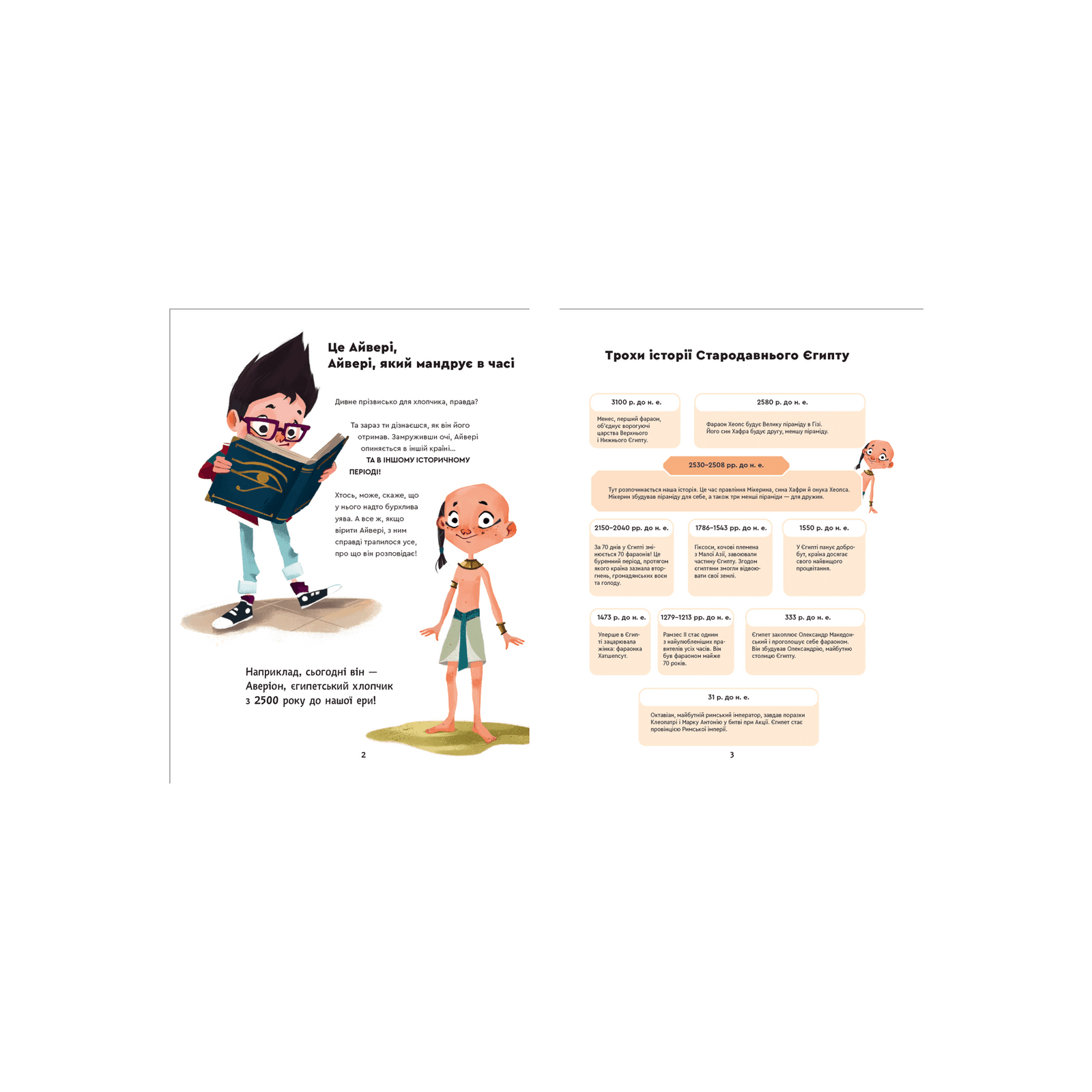 А ще у нього є особлива здатність: варто йому замружити очі, як він потрапляє до іншої країни та іншої історичної епохи! Наприклад, сьогодні він — Аверіон, хлопчик із СТАРОДАВНЬОГО ЄГИПТУ. Приєднуйся до неймовірних мандрів. Адже у цій сповненій сюрпризів мандрівці ти зустрінеш ФАРАОНА, могутніх єгипетських богів, пропливеш на човні Нілом і навіть допоможеш фахівцю з МУМІФІКАЦІЇ!