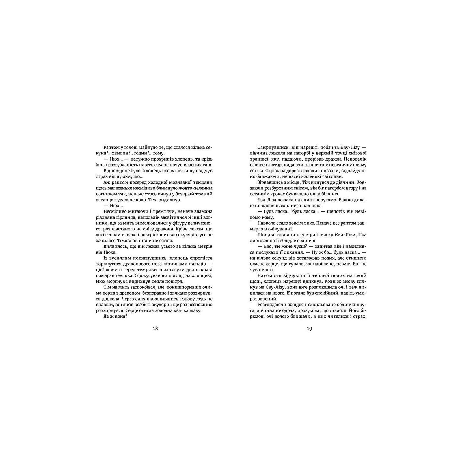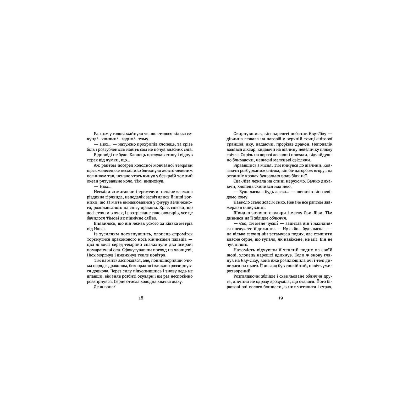 У безмежно темному і засніженому світі загубити одне одного дуже легко. Та що там, у цій темряві можна загубити навіть самого себе. Вирушаючи у подорож, Єва-Ліза, Тім, Анна та Нік хочуть лише одного — знайти Макса. Та чи можливо знайти когось, коли не знаєш, де шукати, а супроти тебе — сама безмежність? Водночас чи можна залишатися на місці, коли десь далеко, там, де тиша, неодмінно мають бути відповіді? Щоправда, можливо, зовсім не ті, на які сподіваєшся. . .