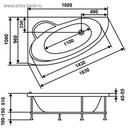 Ванна акриловая Eurolux SPARTA, 160х100х47 см, левая, без каркаса