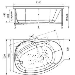 Ванна акриловая Vannesa 2-01-0-1-1-213Ч "Монти", 150 х 105 см, без каркаса, левая