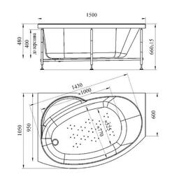 Ванна акриловая Vannesa 2-01-0-2-1-213Ч "Монти", 150 х 105 см, без каркаса, правая