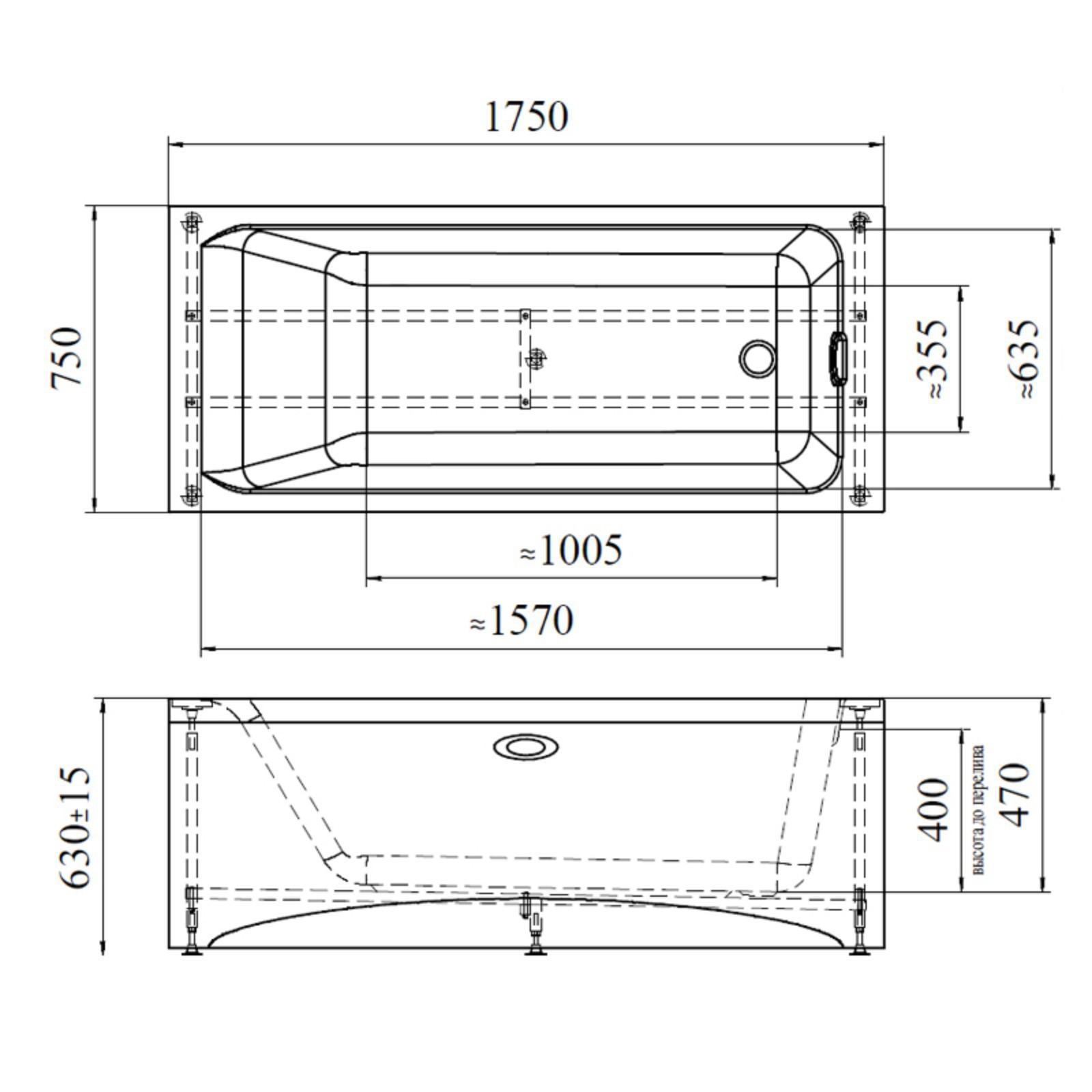Ванна акриловая Vannesa 2-01-0-0-1-227Ч "Агата", 175 х 75 см, без каркаса