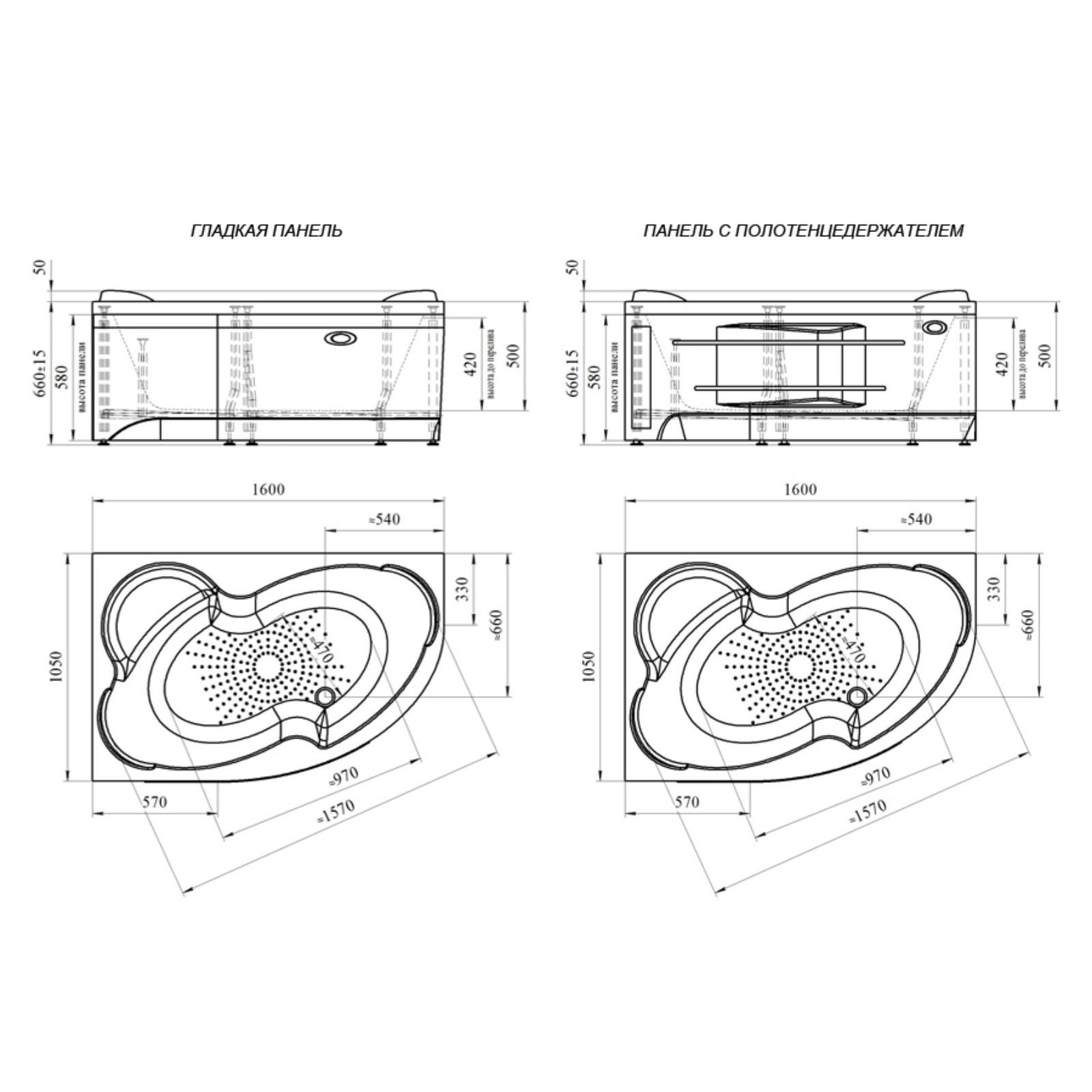 Ванна акриловая Vannesa 2-01-0-2-1-229Ч "Ирма", 160 х 105 см, без каркаса, правая