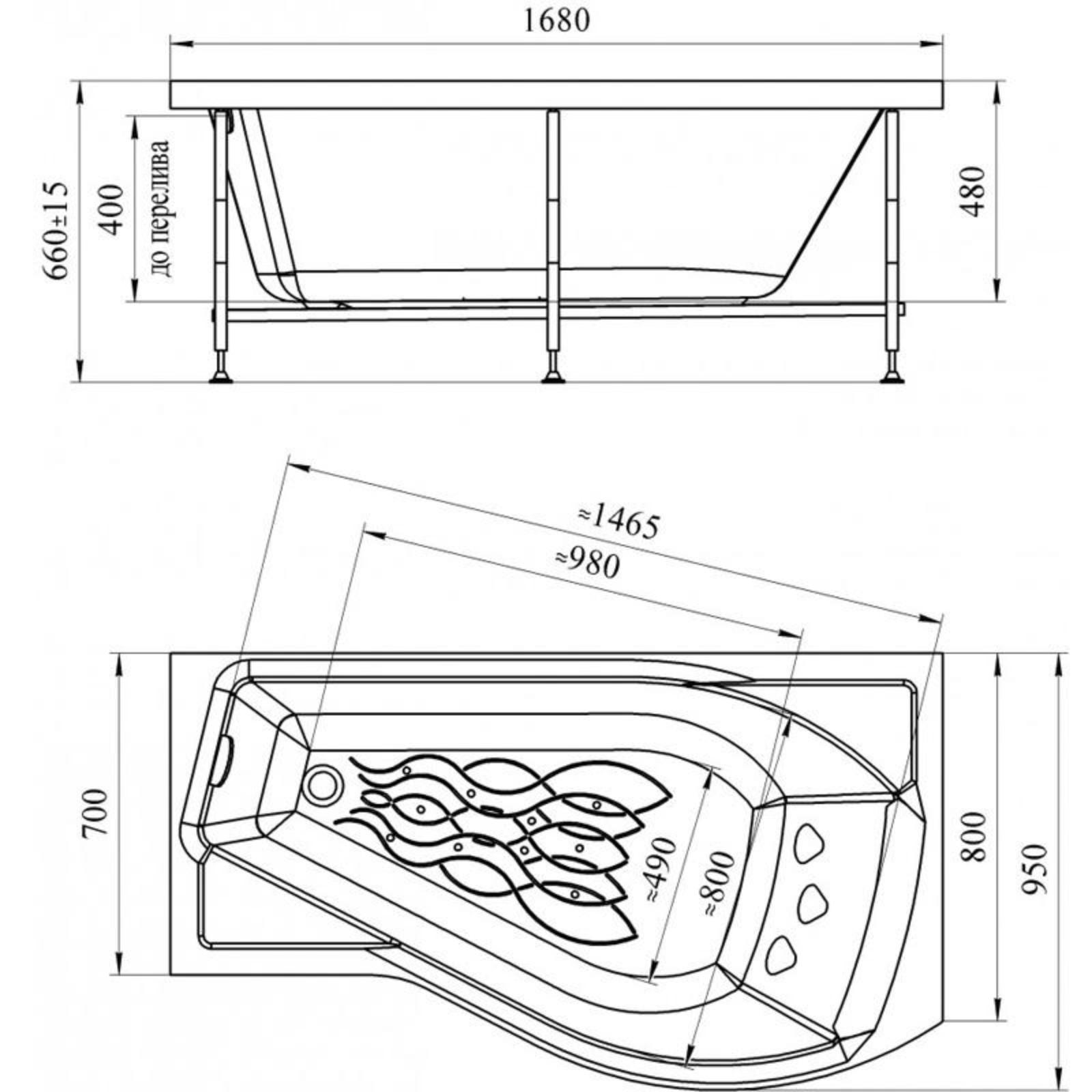 Ванна акриловая Vannesa 2-01-0-1-1-209Ч "Миранда", 168 х 95 см, без каркаса, левая